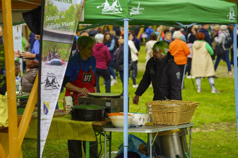 Na popoldanskem dogodku ob reki Muri so se zbrali številni obiskovalci, ki so uživali v kulturnem programu, vajah in kulinaričnih dobrotah.