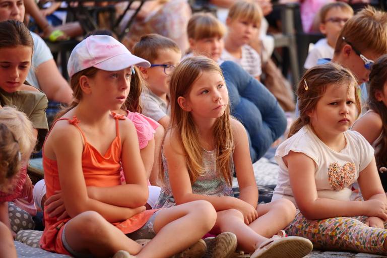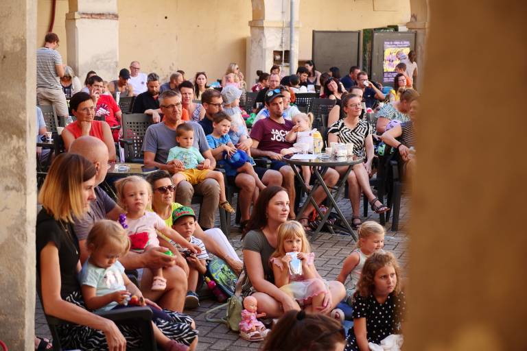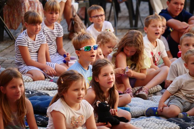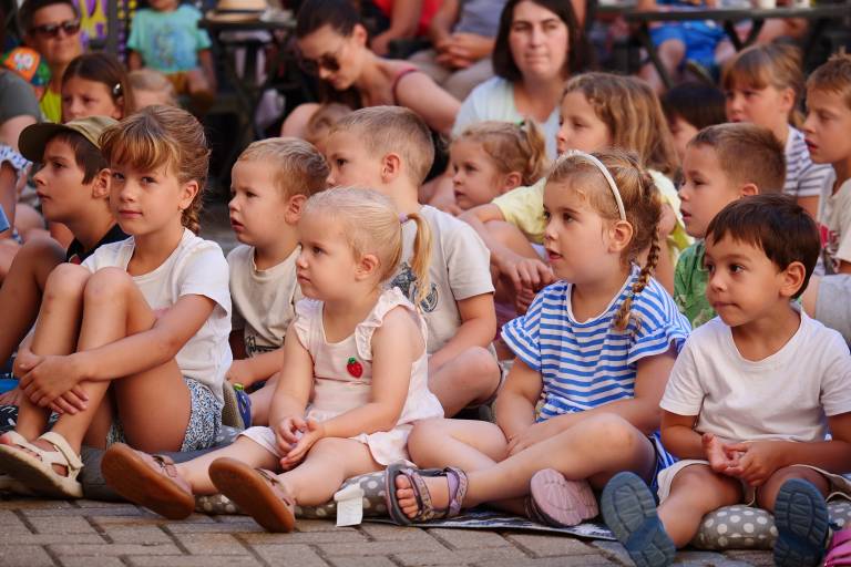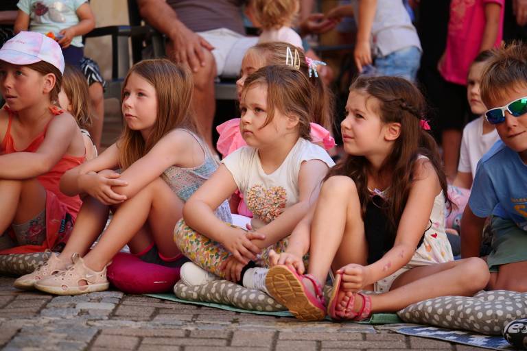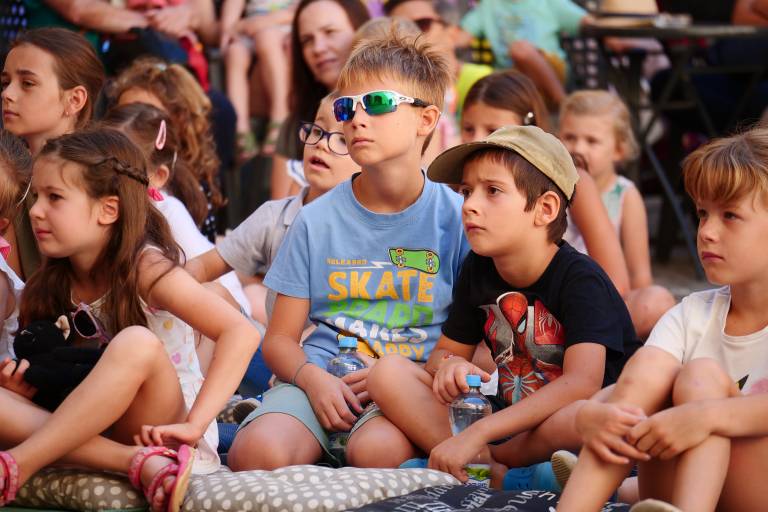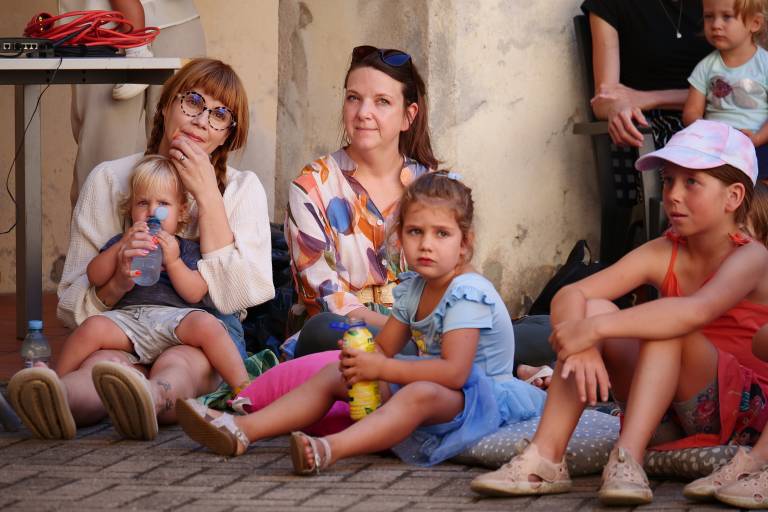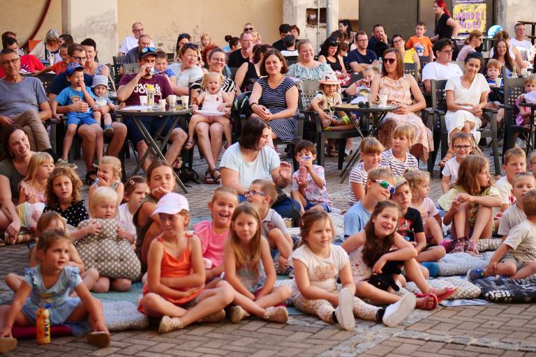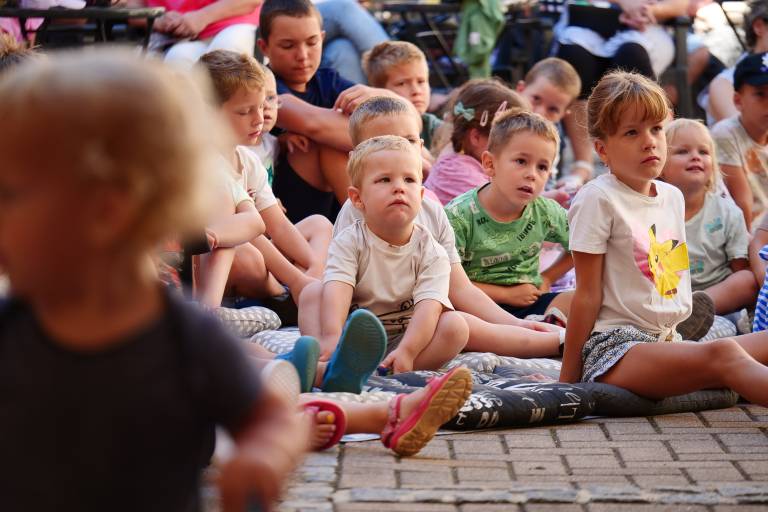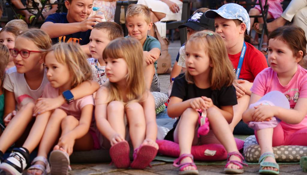 Grajsko dvorišče v Murski Soboti je danes dopoldne znova oživelo z otroškim smehom in pravljično energijo, saj je v okviru Soboškega poletja 2025 Gledališče Labirint uprizorilo predstavo Metuljček in Metuljčica.