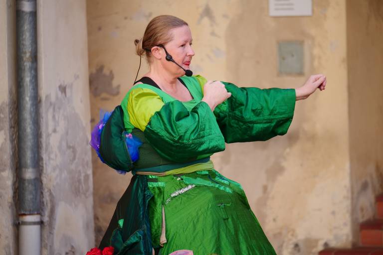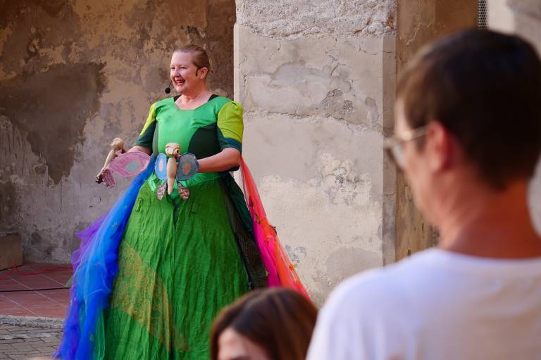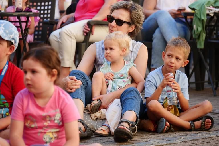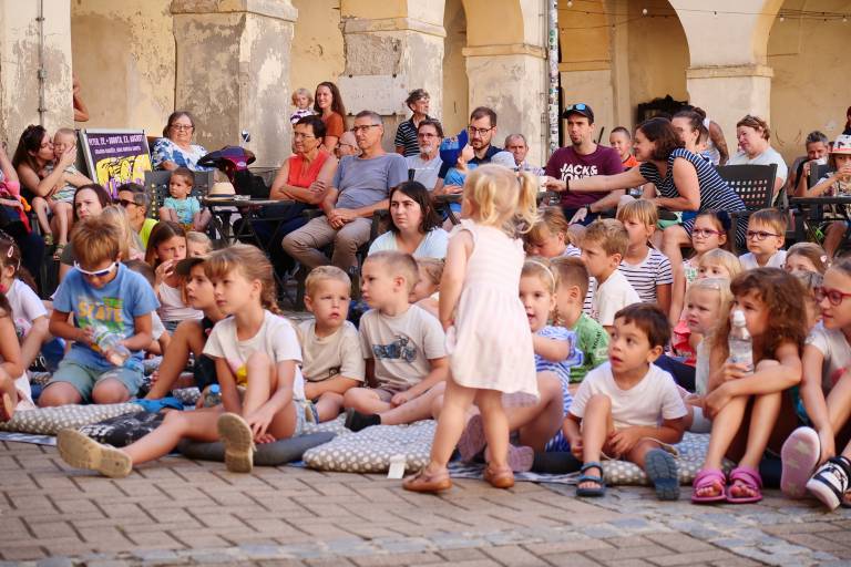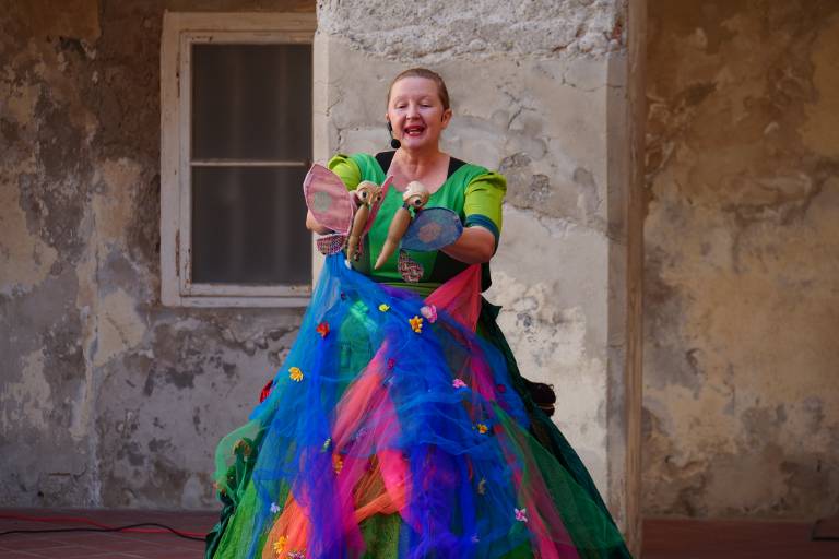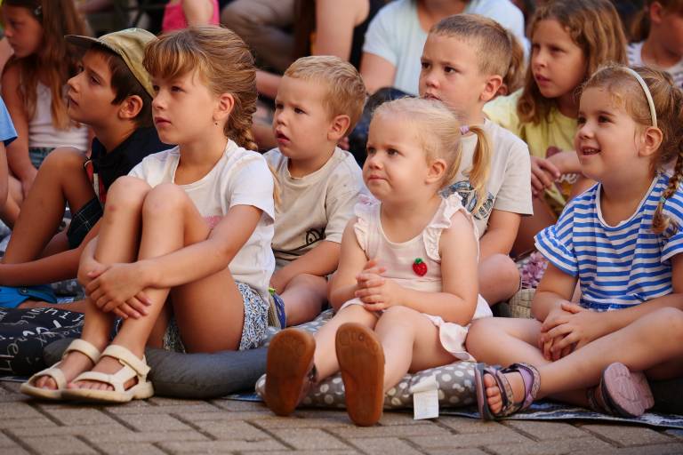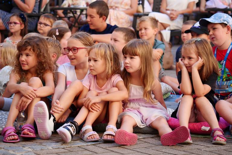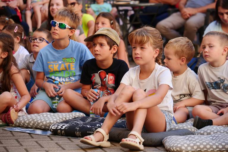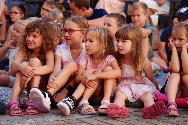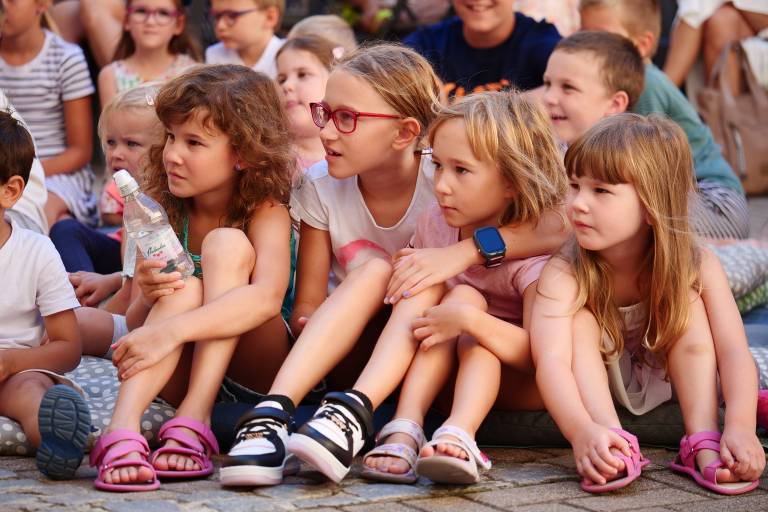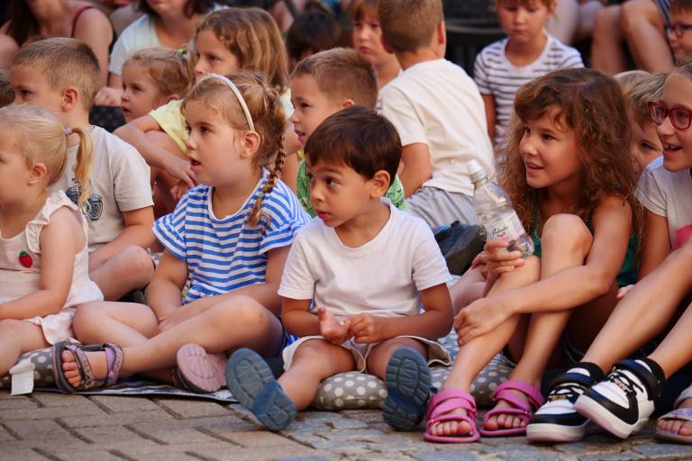 Grajsko dvorišče v Murski Soboti je danes dopoldne znova oživelo z otroškim smehom in pravljično energijo, saj je v okviru Soboškega poletja 2025 Gledališče Labirint uprizorilo predstavo Metuljček in Metuljčica.