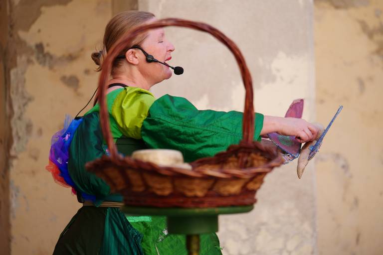 Vlogo pripovedovalke in nastopajoče je prevzela Tina Oman.