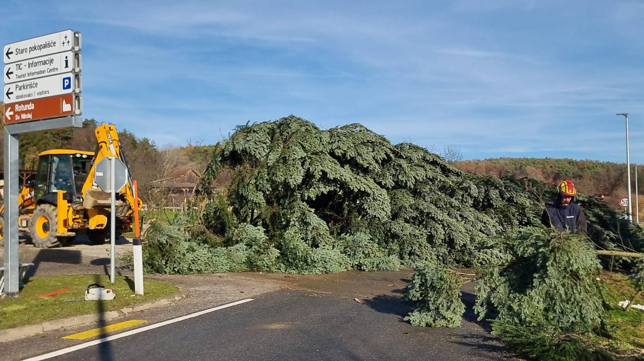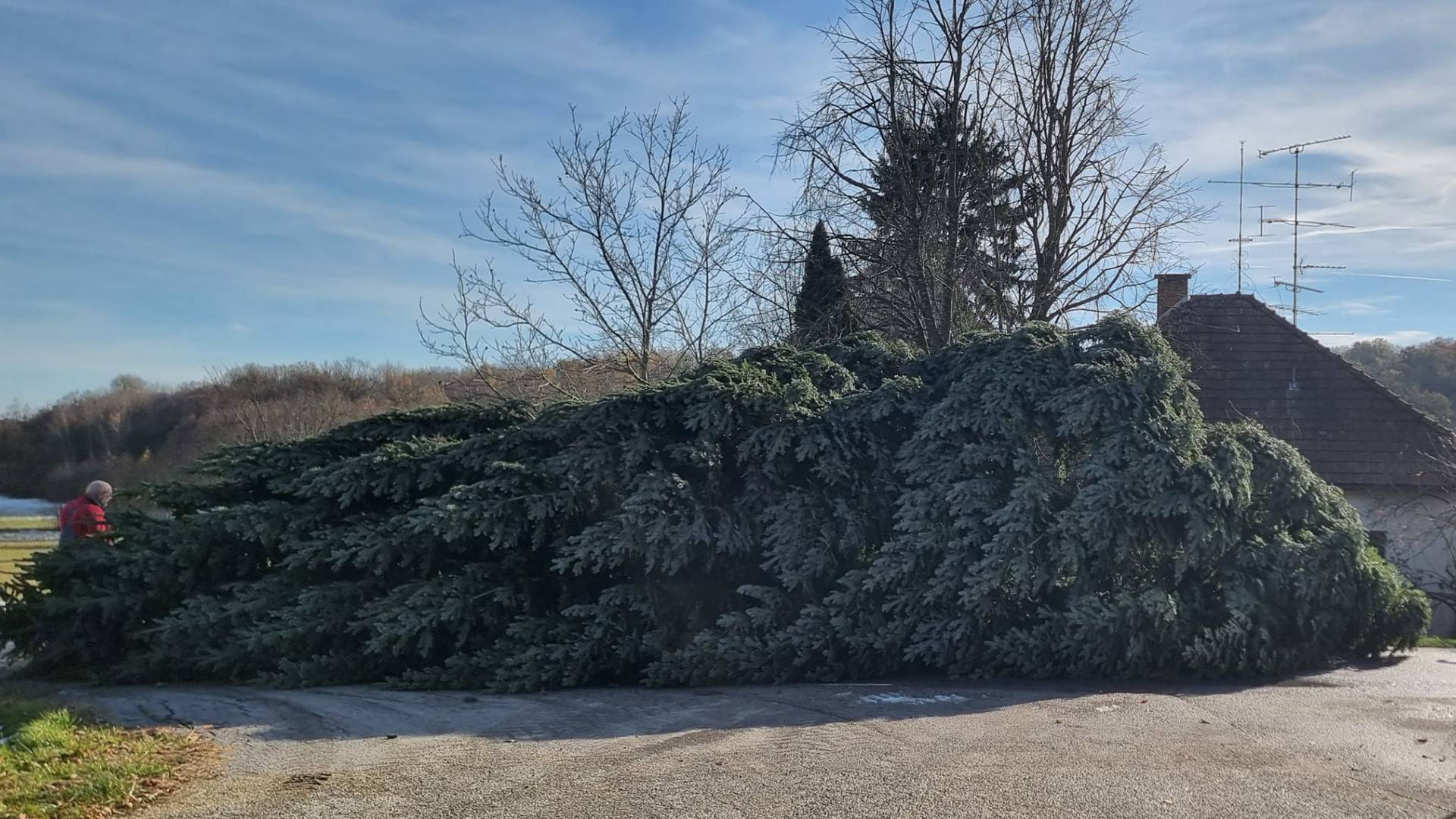 V Selu so podrli 45 let staro smreko, ki bo te praznike krasila Moravske Toplice.