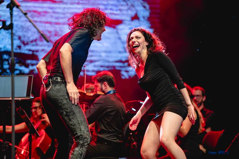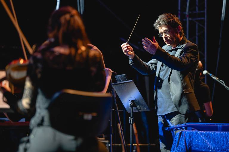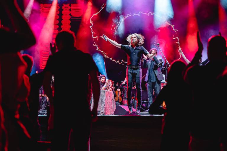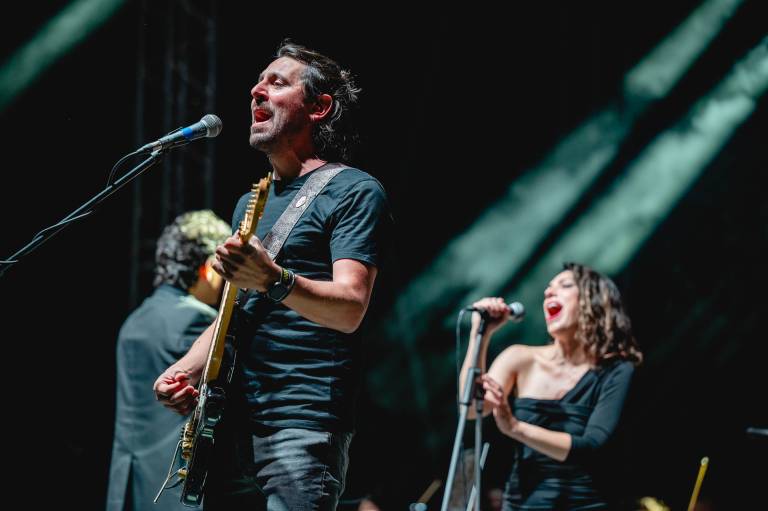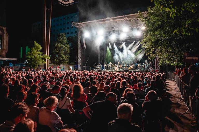 Včerajšnji koncert, ki ga je spremljal 30-članski godalni orkester, je nosil naslov The Dark Side Orchestra, s katerim so se nastopajoči ob 50. obletnici izida poklonili albumu Dark Side of the Moon (1973).