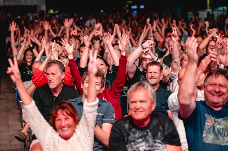V soju žarometov Glavnega odra na Trgu Leona Štuklja so občinstvo včeraj osupnili Pink Floyd History - tribute band, ki se je na sceni uveljavil tudi s spektakularnimi svetlobnimi učinki in video projekcijami.