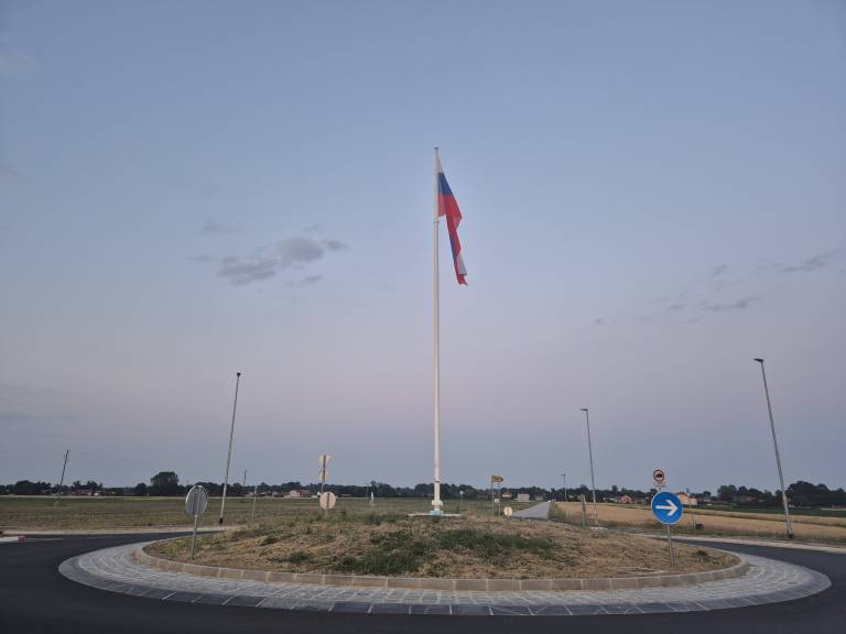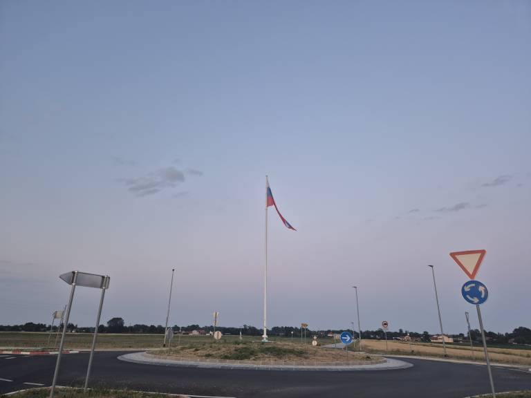 V začetku meseca marca je na novem krožišču v občini Črenšovci zaplapolala velika slovenska zastava.