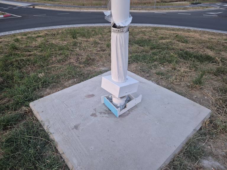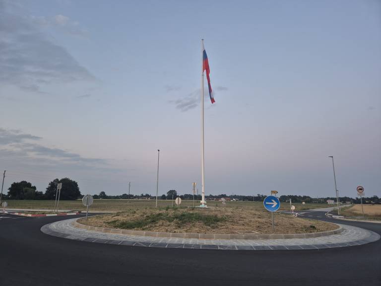 Po skoraj treh mesecih od dneva, ko je zastava podlegla vetru, so drog na krožišču ponovno postavili.