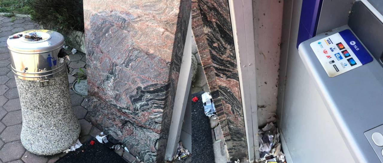 Bankomat v ostudnem stanju, kdo ga bo očistil?