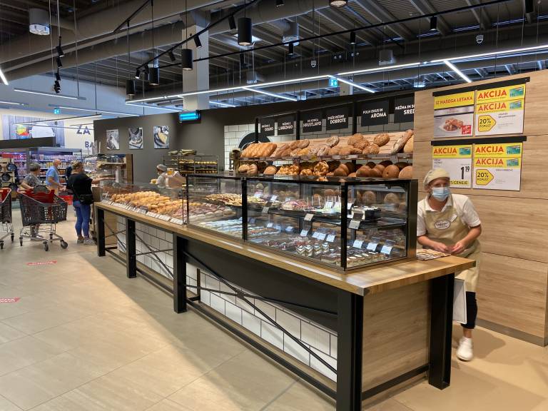Novost v trgovini je tudi sushi bar, v katerem bo kupcem vsak dan na voljo več vrst sveže pripravljenih sushijev. Prav tako so nove vse blagajne, trgovinske police ter hladilne in zamrzovalne vitrine, tik ob vhodu v trgovino pa se nahajajo novi, lažji nakupovalni vozički.