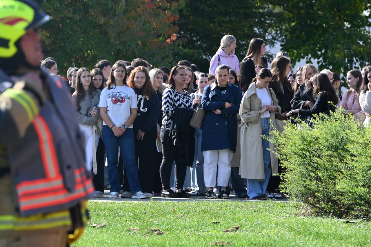 V okolici Ekonomske šole Murska Sobota mrgoli gasilcev.
