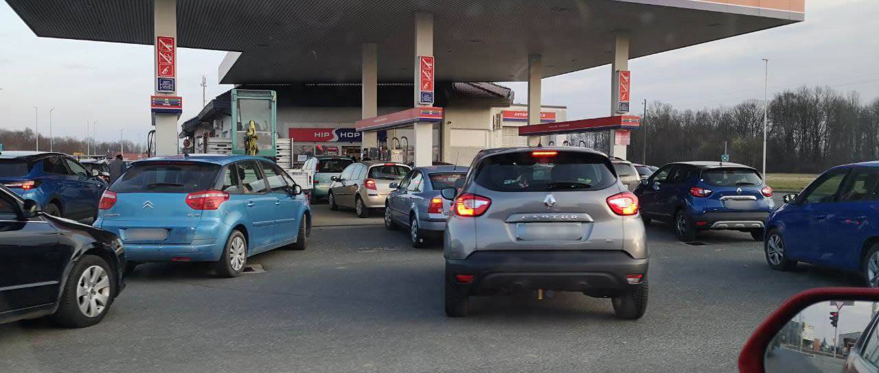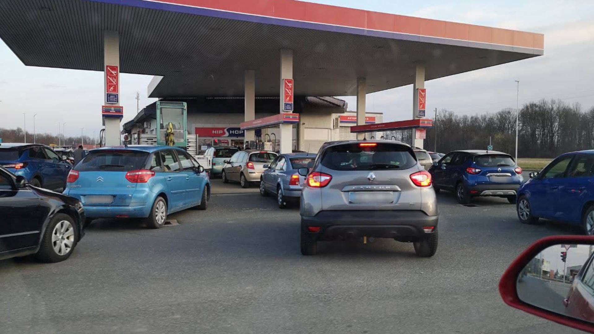 Zaradi negotovih razmer so tako pred kratkim na Madžarskem že posegli v omejevanje cen. Le dober kilometer preko meje smo tako danes lahko opazili povečano število slovenskih avtomobilov.