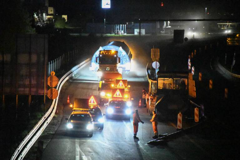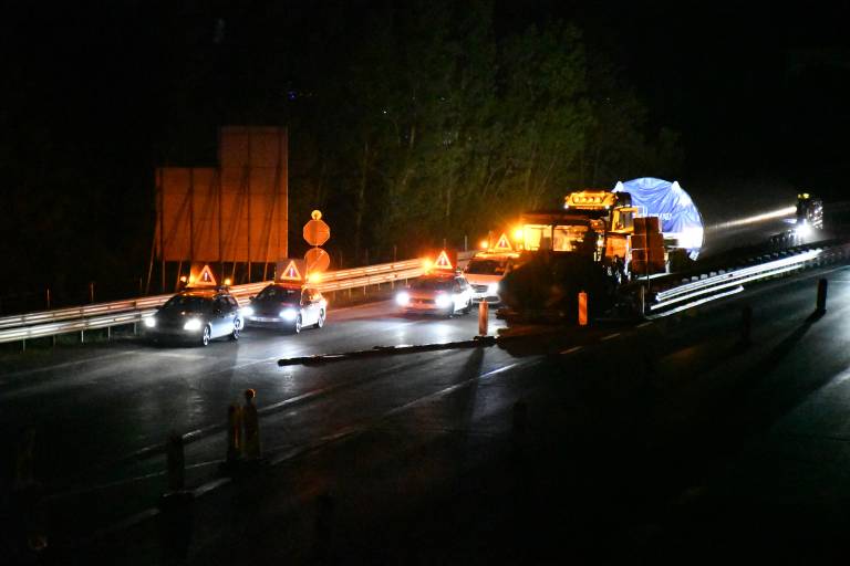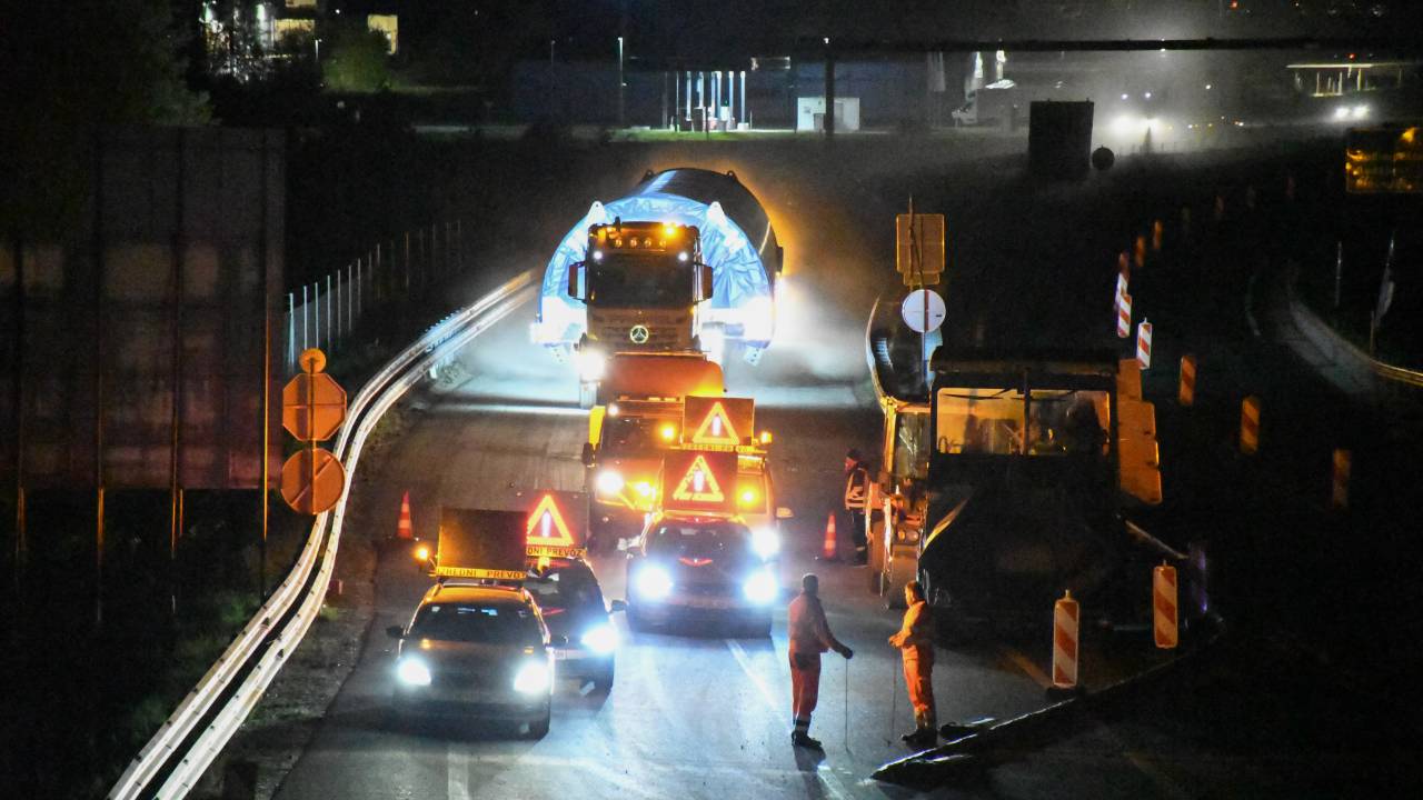 Na pomurski avtocesti je bila danes zgodaj zjutraj popolna zapora prometa zaradi izrednega prevoza elis za vetrne elektrarne.