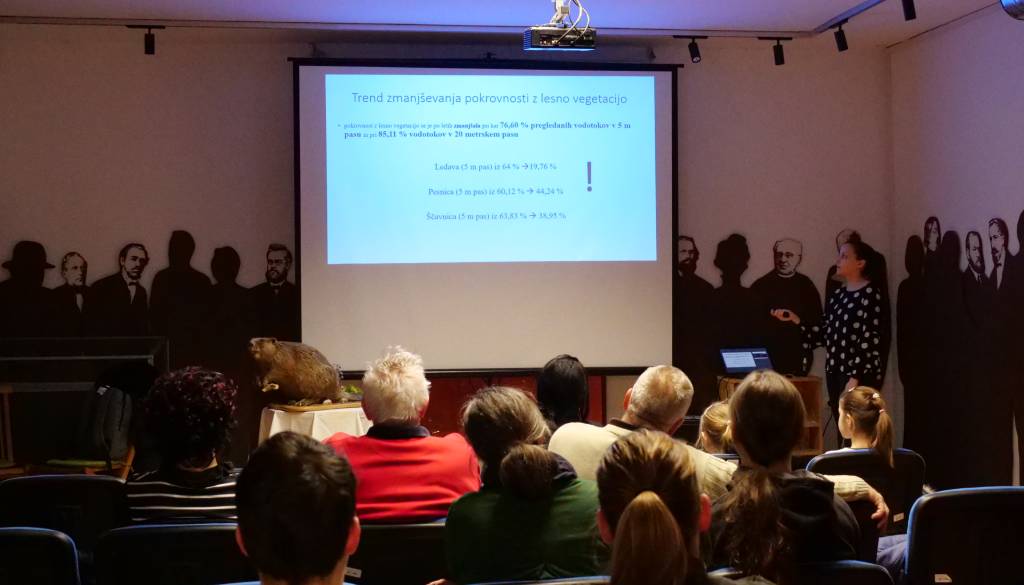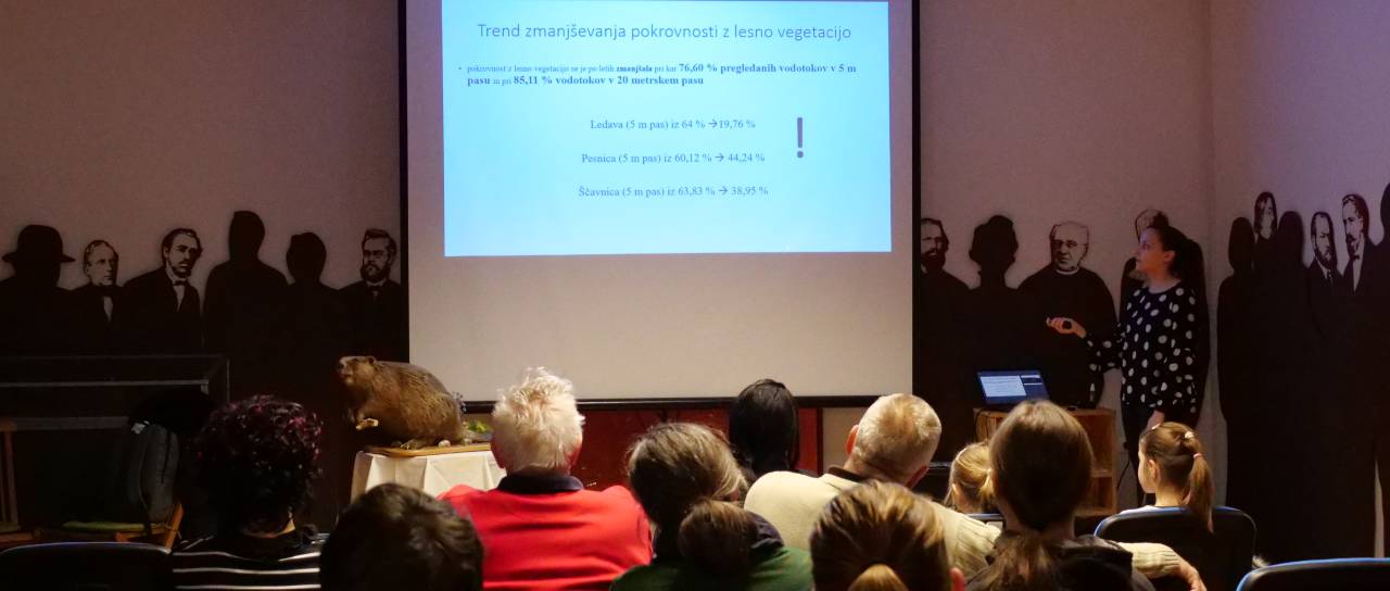 Po predavanju je sledila otvoritev razstave, ki je bila osredotočena na življenje in delo bobra v Sloveniji.