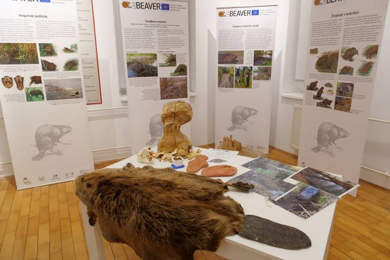Razstavljeni so bili informativni panoji in fotografije, ki so prikazovali bobrove jezove, prehrano in življenjski cikel.