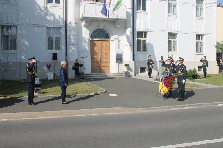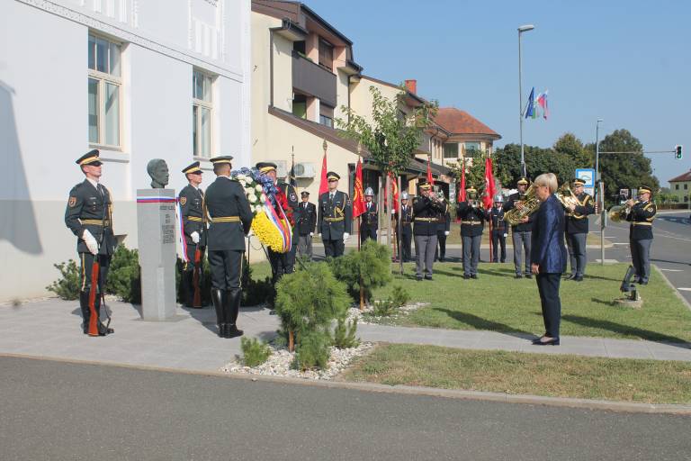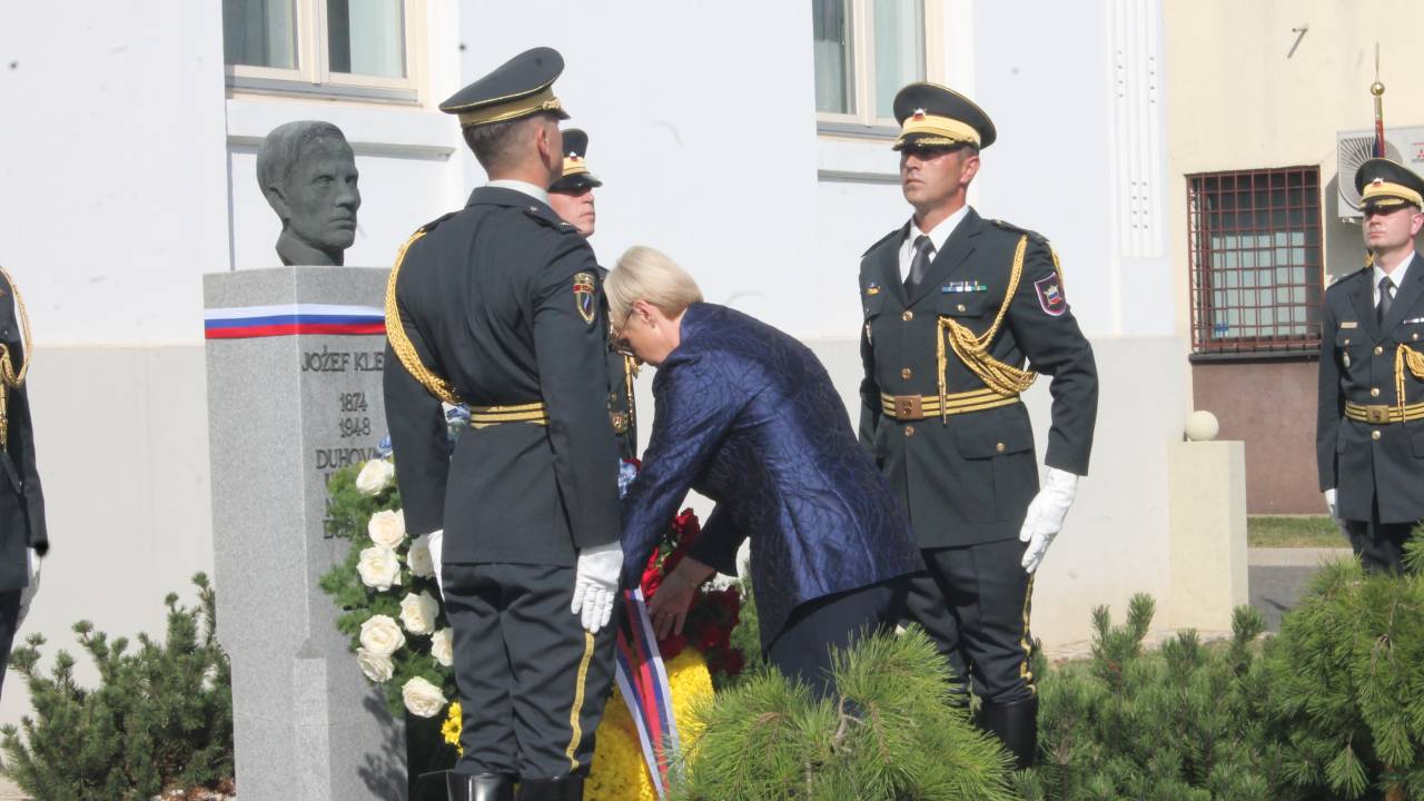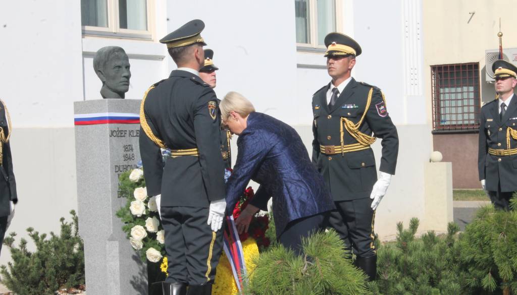 V Črenšovcih je danes potekala slovesnost ob dnevu združitve prekmurskih Slovencev z matičnim narodom, na kateri je predsednica republike Nataša Pirc Musar položila venec k spomeniku narodnemu buditelju Jožefu Kleklu.