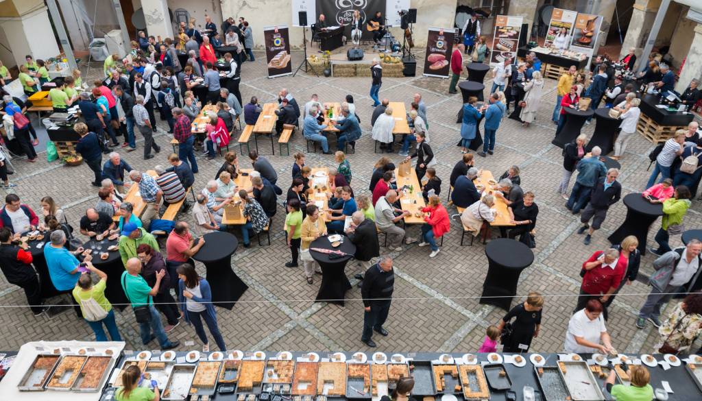 Potem, ko je bil soboški grad včeraj prizorišče kulinarične prireditve Gourmet Over Mura, se danes tam odvijal Festival prekmurske šunke in prekmurske gibanice.