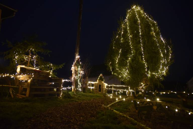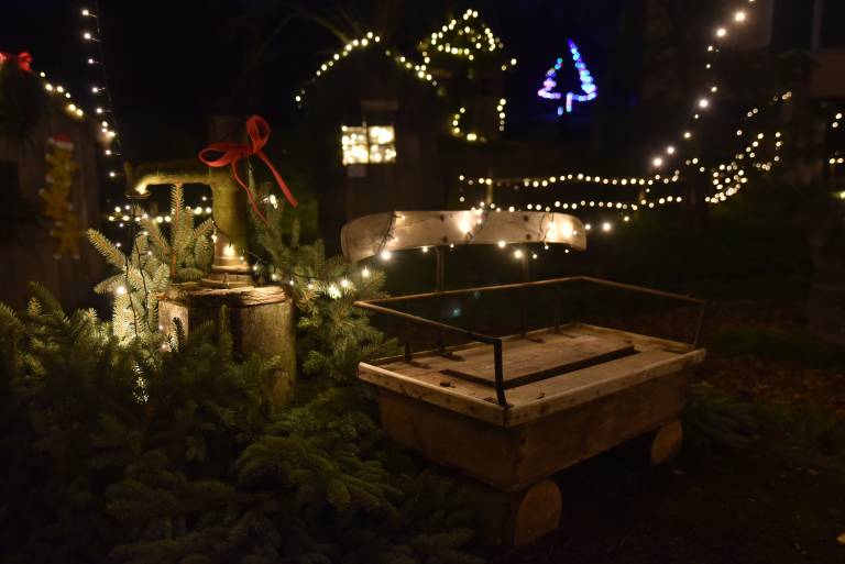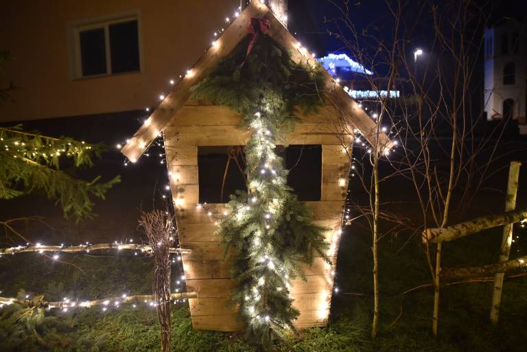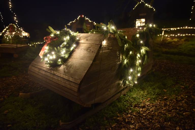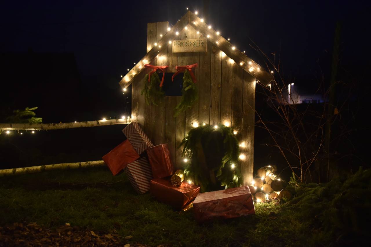 Avtentično božično vzdušje v vasi pričara dekoracija iz hišk, božičnih sani, jelke in prazničnih lučk. Poleg tega so se ustvarjalni vaščani domislili, da spremenijo avtobusno postajo v postajo severnega pola.
