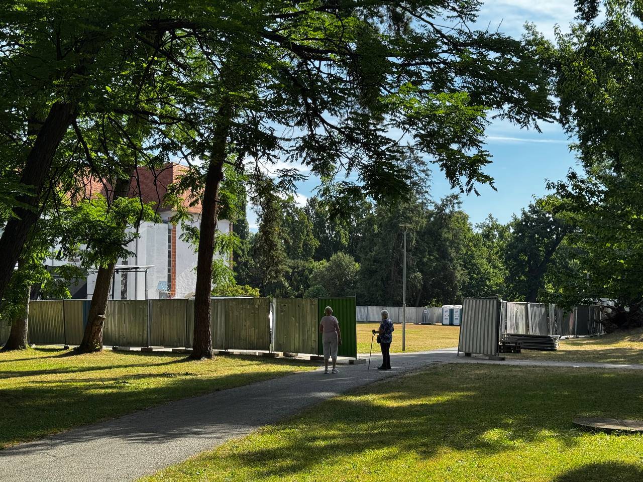 Dostop do določenih poti v parku je omejen zaradi priprave prizorišča, kar je zmotilo nekaj mimoidočih.