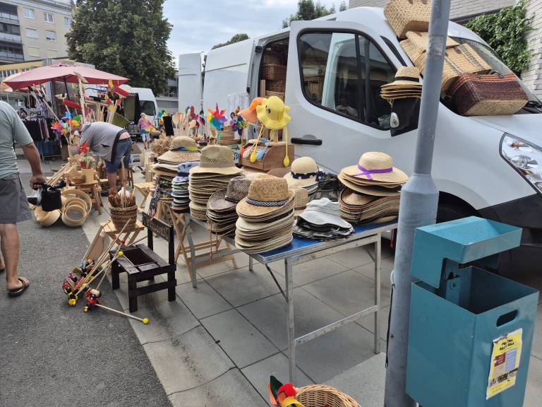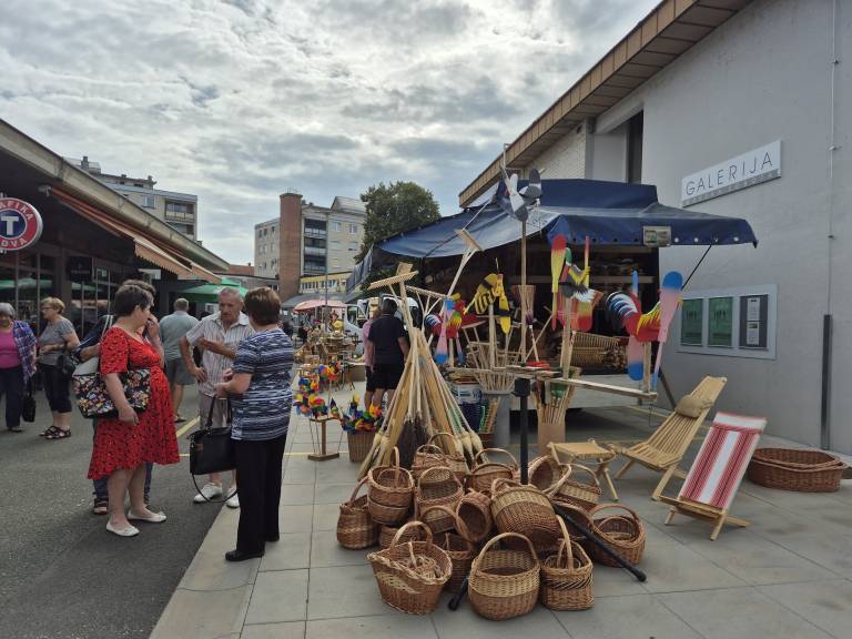 Na stojnicah ponujajo košare, metle, razne ročne izdelke, oblačila, lesene mize, nagrobne sveče, čevlje, prte, igrače, suho sadje in ostale izdelke.