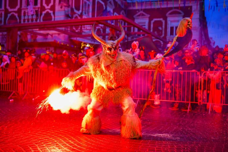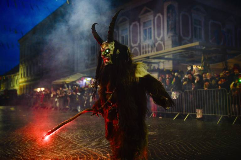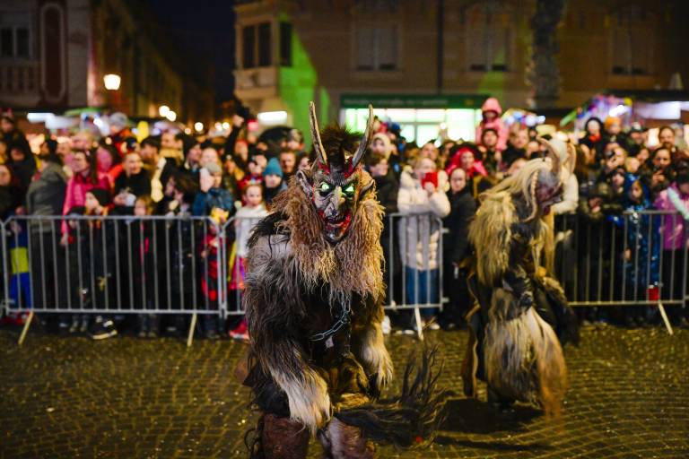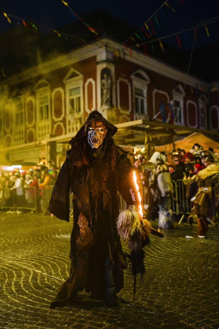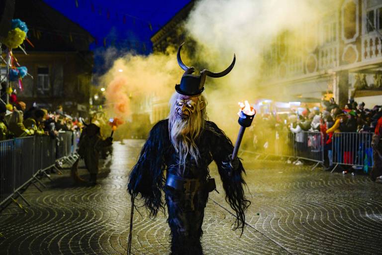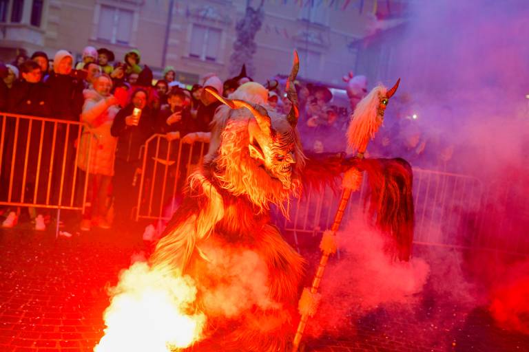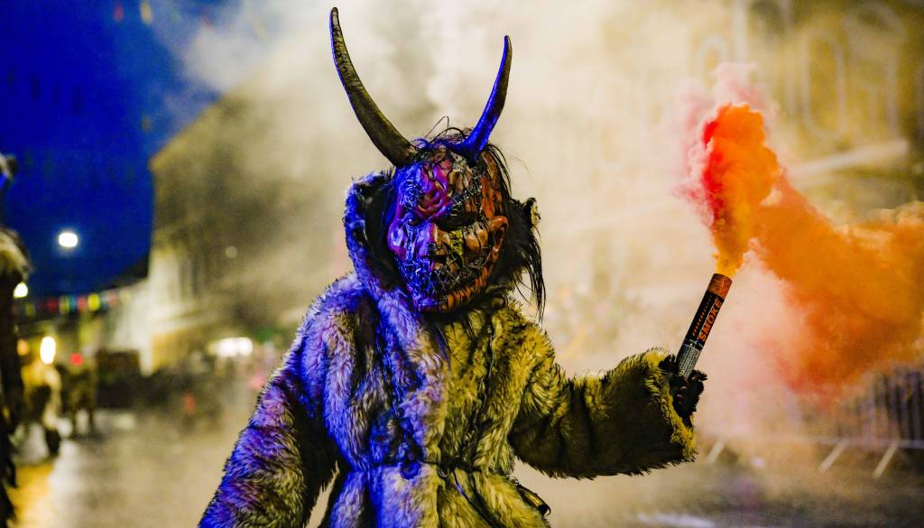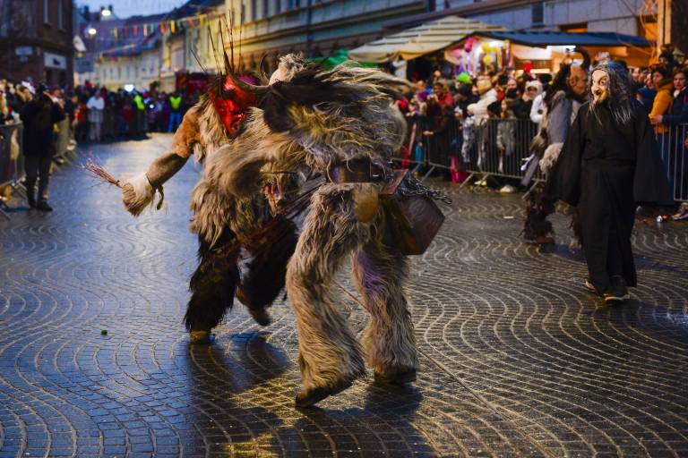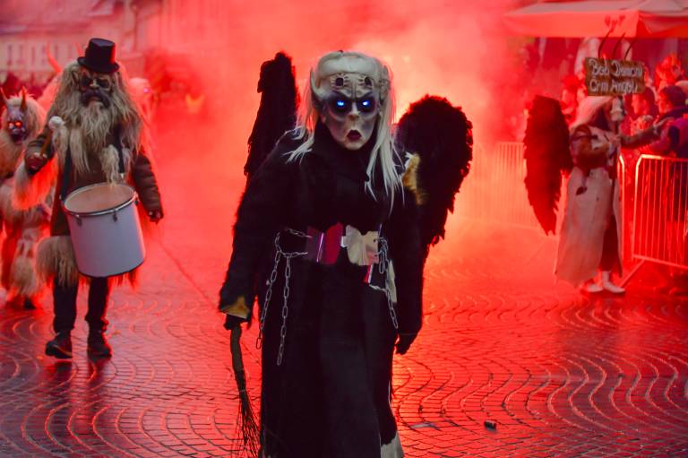 Noč ima svojo moč - tudi za pusta! Na karnevalsko okrašene ulice Ptuja je tokrat privabila skrivnostne like - krampuse, ki so pričarali spektakularno igro teme in svetlobe.
