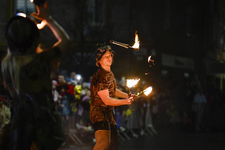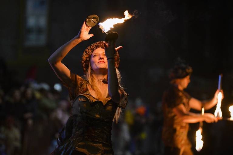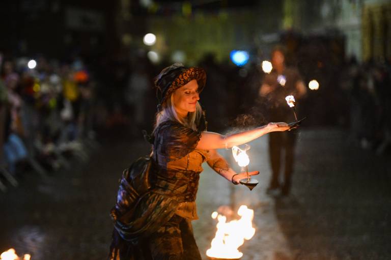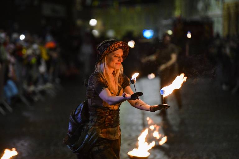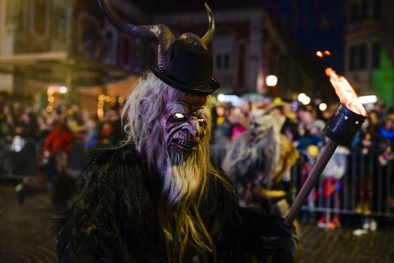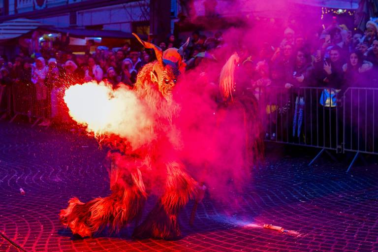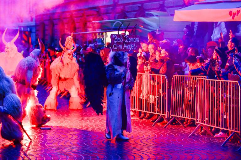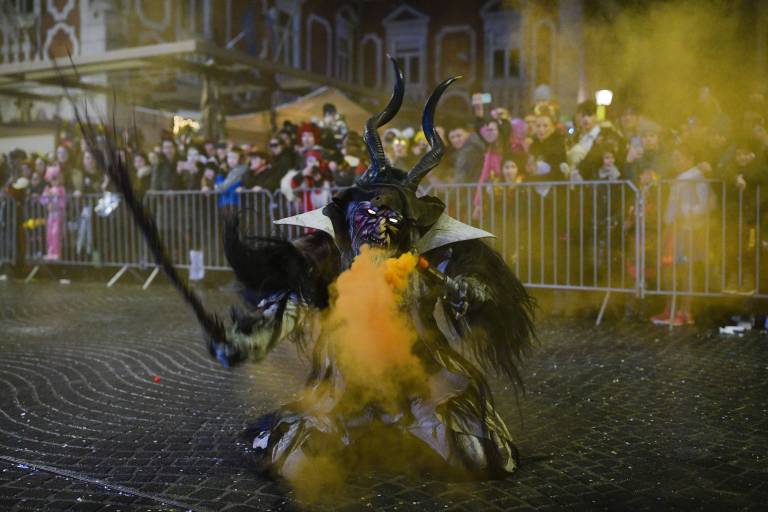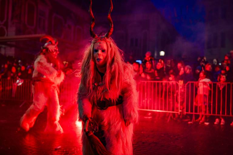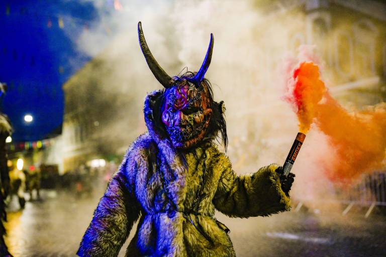 Noč ima svojo moč - tudi za pusta! Na karnevalsko okrašene ulice Ptuja je tokrat privabila skrivnostne like - krampuse, ki so pričarali spektakularno igro teme in svetlobe.