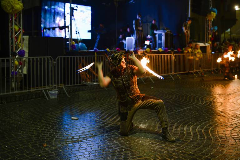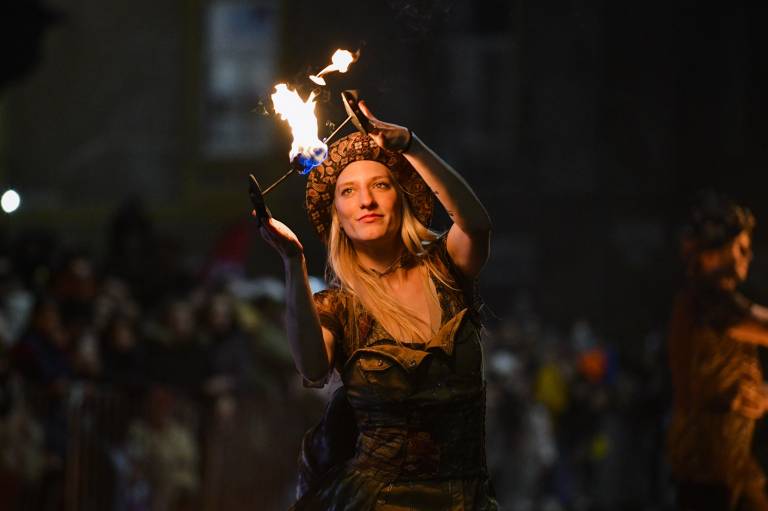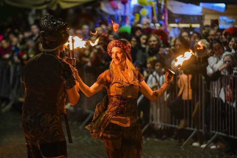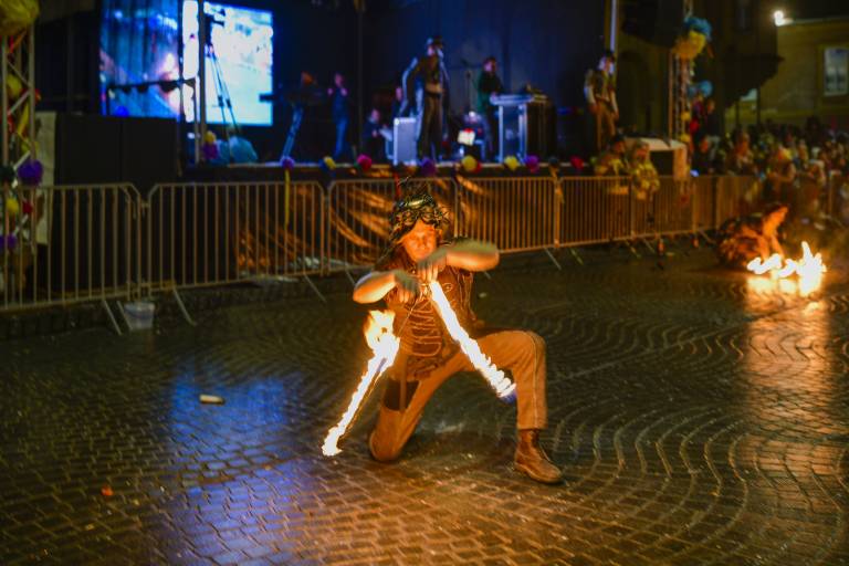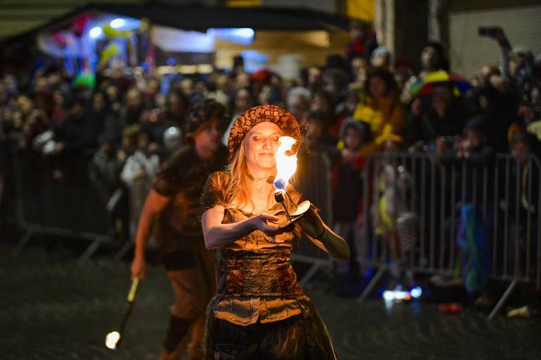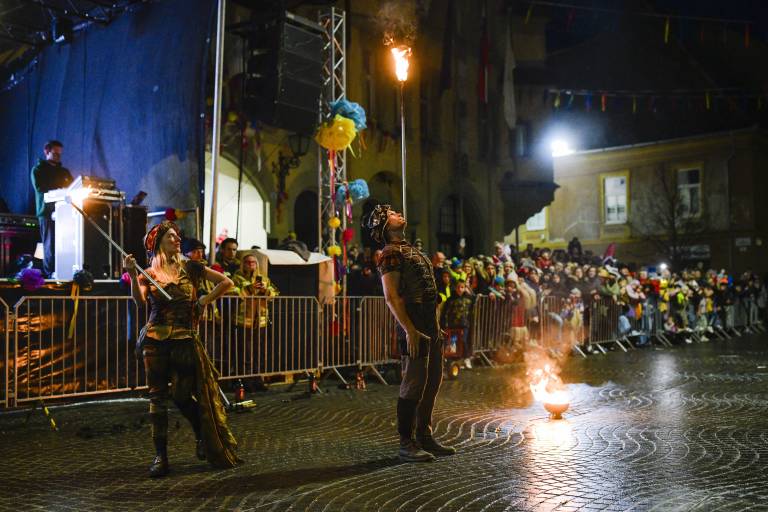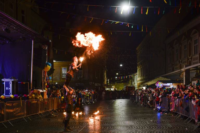 Vrhunec edinstvene sobote v času pusta je bil današnji nočni spektakel, ki se je začel ob 17. uri. Po ognjenem šovu so se obiskovalcem pridružili še kurenti.