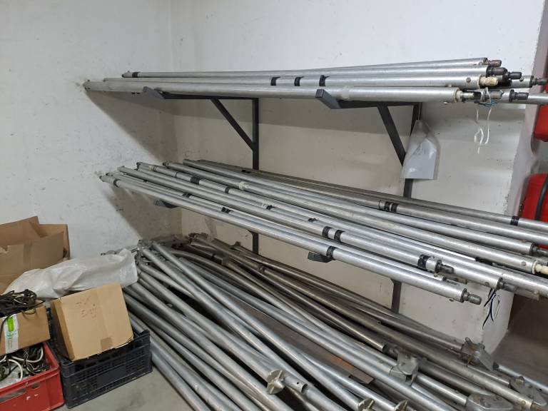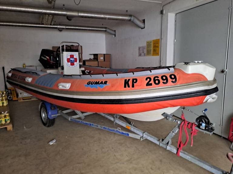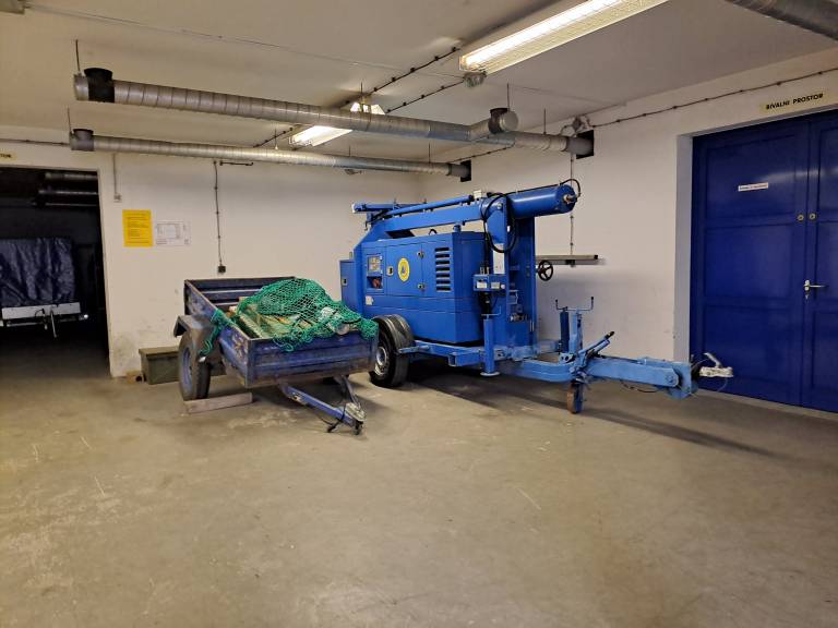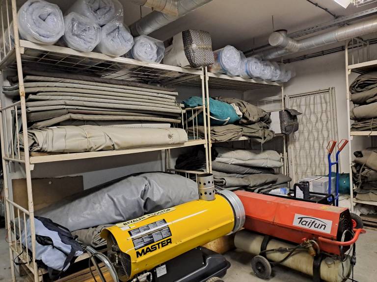 Shranjene so različne potrebščine, kot so šotorska platna, oblačila, grelci in oprema za nujne primere. V njem je tudi prostor z mizami in stoli.