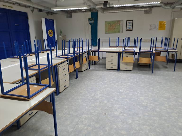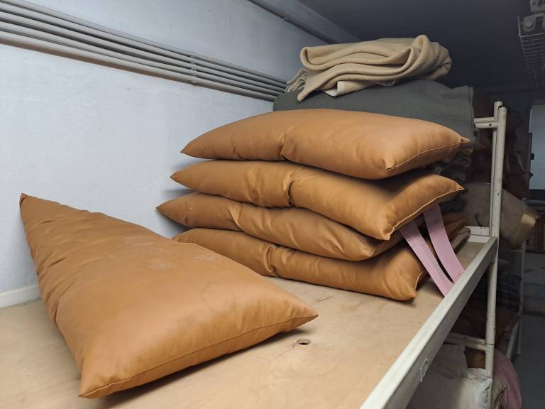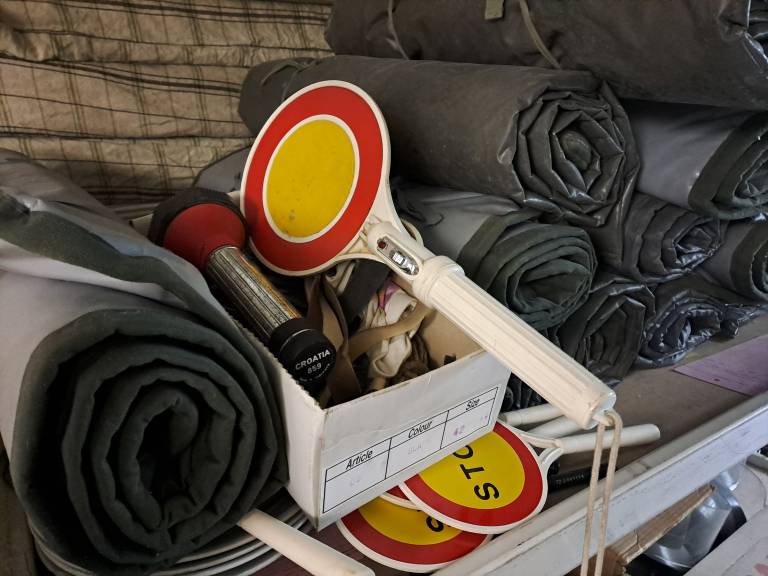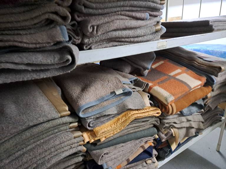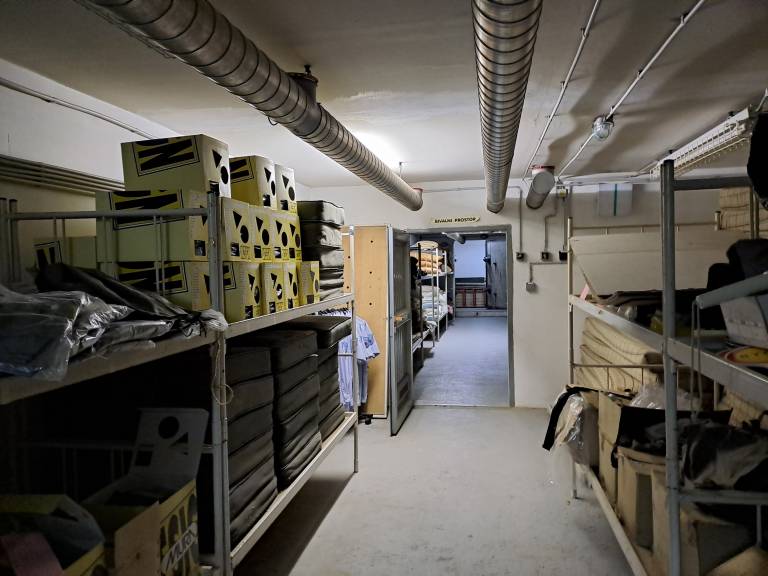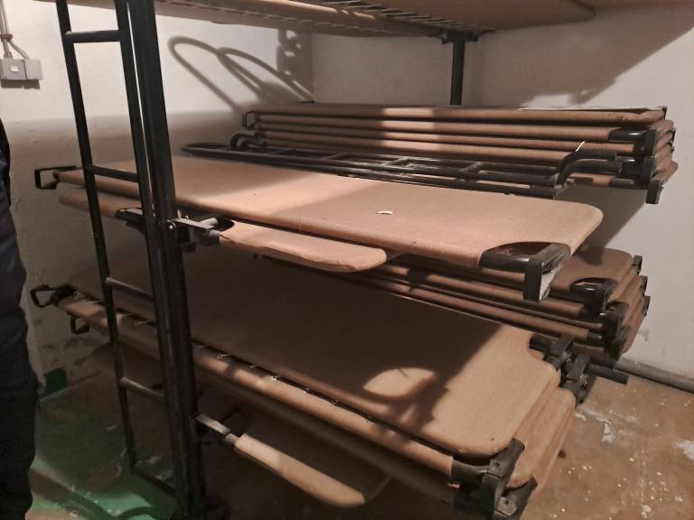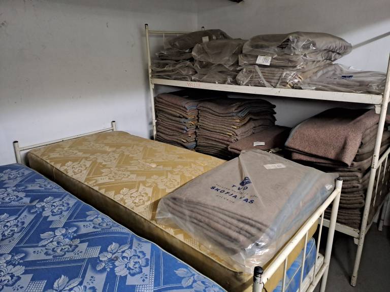 V zaklonišču Osnovne šole III Murska Sobota smo opazili vse od oblačil, vzmetnic, odej in vzglavnikov, do svetilk ter čelad.