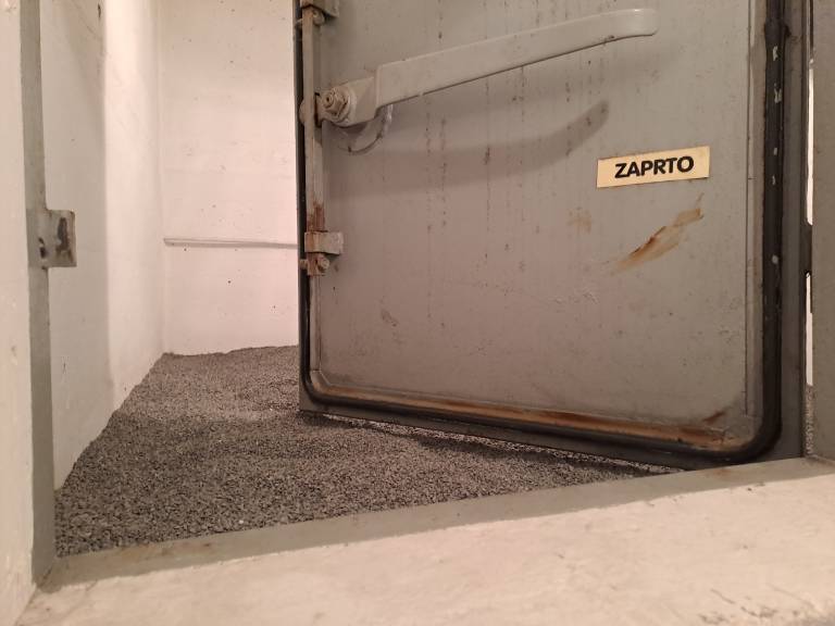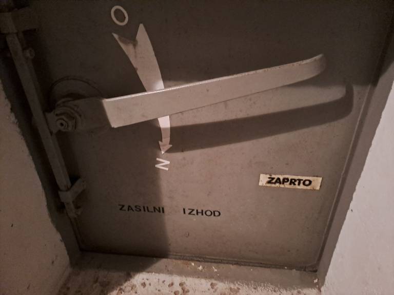 Vhod v zaklonišče na Ulici Mikloša Kuzmiča. Notranjosti tega zaklonišča nismo smeli fotografirati.