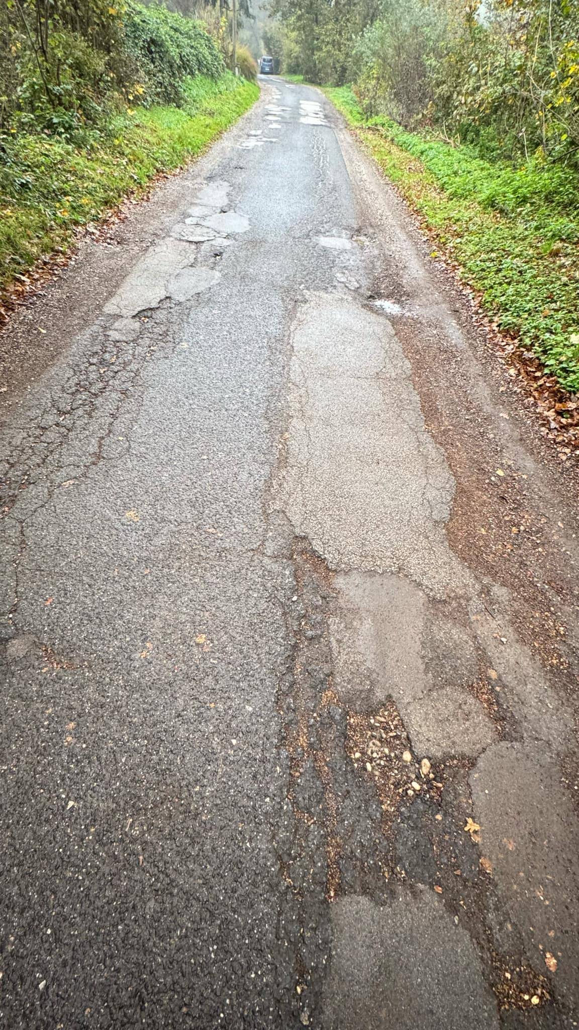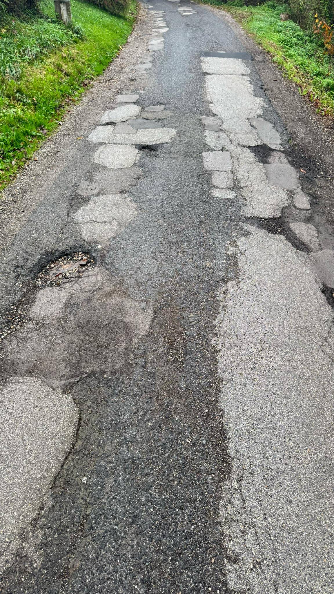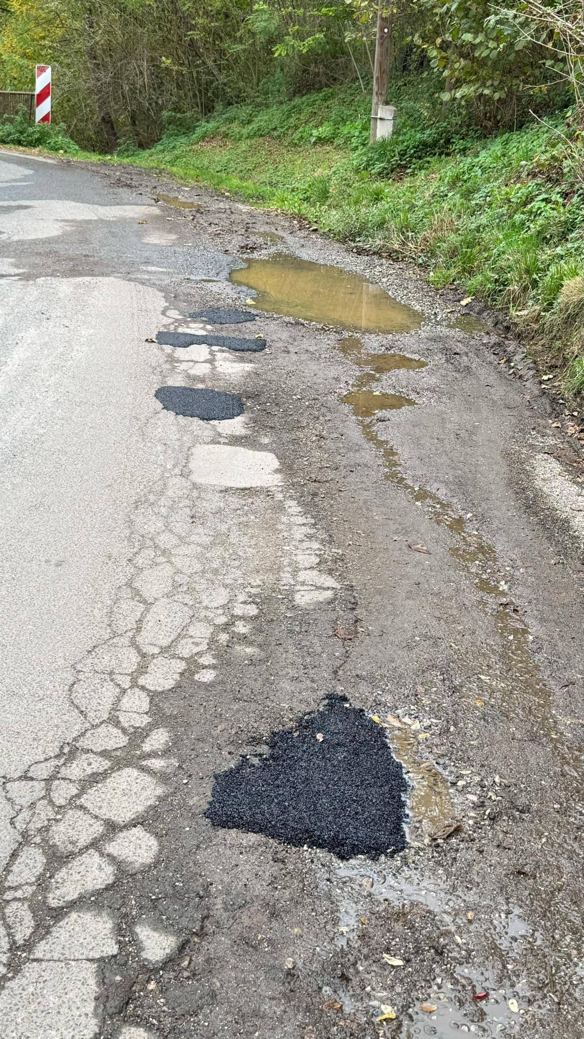 Luknje so delno zapolnjene z materialom, ki na nekaterih mestih ne vzdrži niti prvih dežnih kapelj, medtem ko ostaja asfalt tako neenakomeren, da je vožnja po cesti prej adrenalinska izkušnja kot pa običajna vsakodnevna vožnja.
