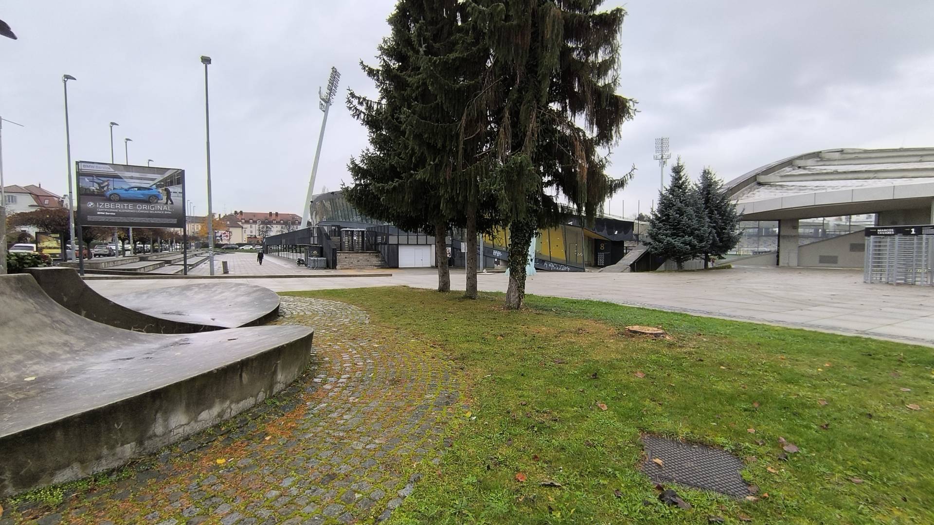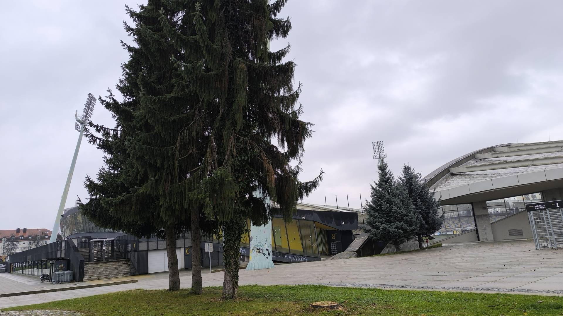Pet metrov visoko drevo je skupaj s še tremi smrekami tvorilo urejeno zeleno linijo ob severni strani stadiona.