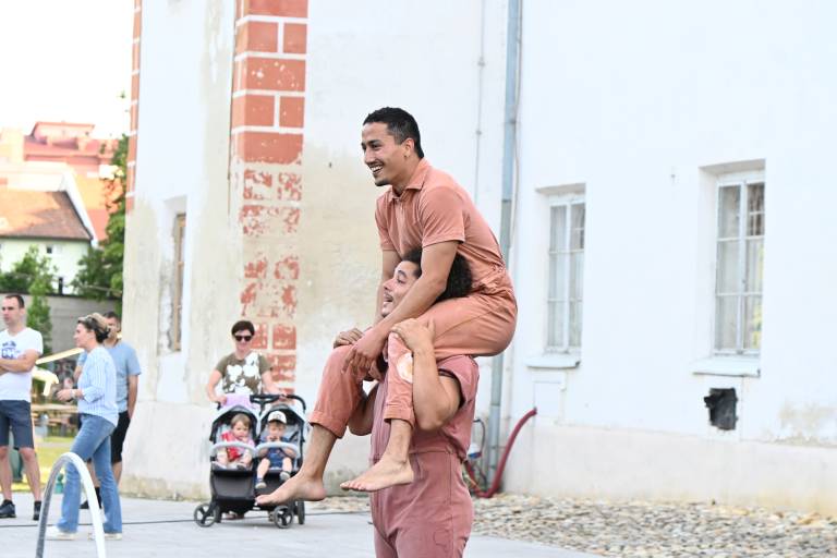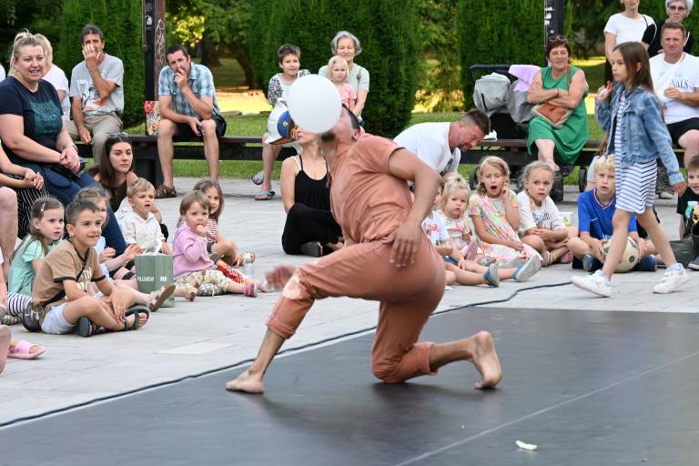 Grajska ploščad v mestnem parku je danes zaživela v ritmu cirkuške in plesne umetnosti, saj je v sklopu festivala Soboški dnevi nastopila skupina Foehn Company iz Maroka in Francije.