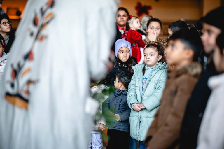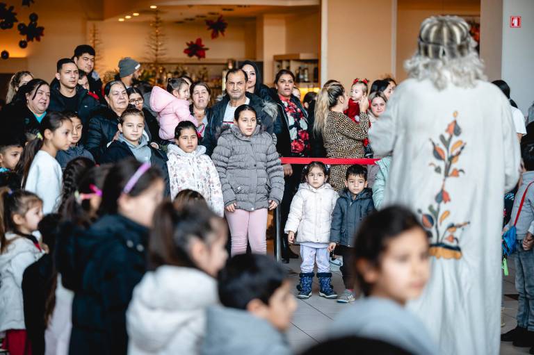 V Ikona centru na Poljanah so se zbrali otroci in njihove družine, da bi dočakali obisk šilalo papa, kot Romi imenujejo dedka Mraza.