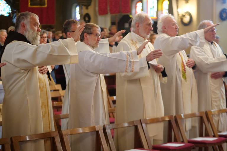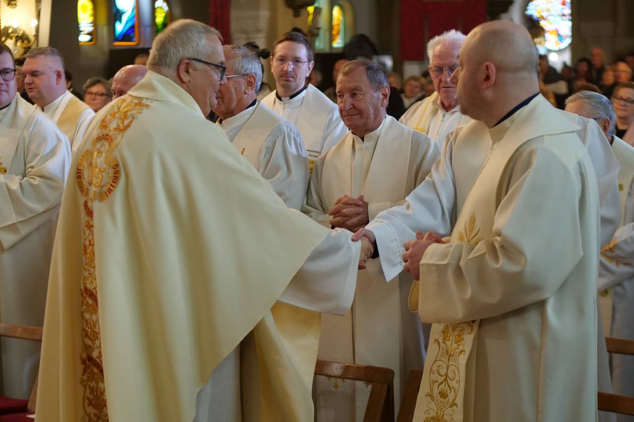 Ob krizmeni maši so se v murskosoboški škofiji z zahvalami in molitvijo spomnili tudi duhovnikov jubilantov.