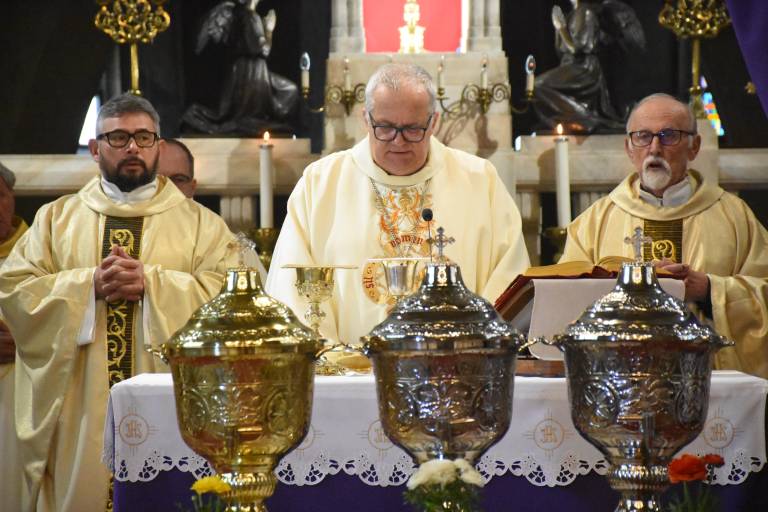 Škof Peter Štumpf je v stolnici svetega Nikolaja blagoslovil krstno in bolniško olje ter posvetil sveto krizmo.
