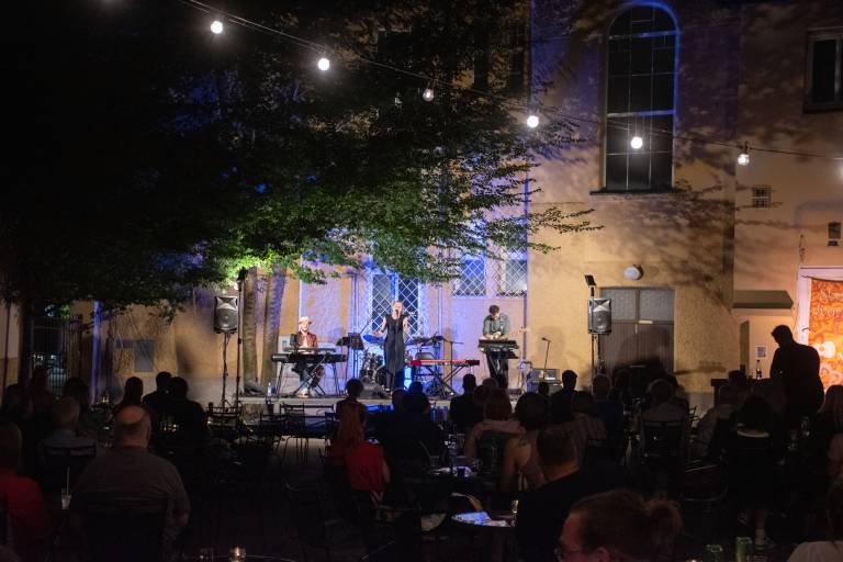 Obiskovalce Skritega dvorišča tokrat navdušila slovenska pevka in pianistka Zala Smolnikar.