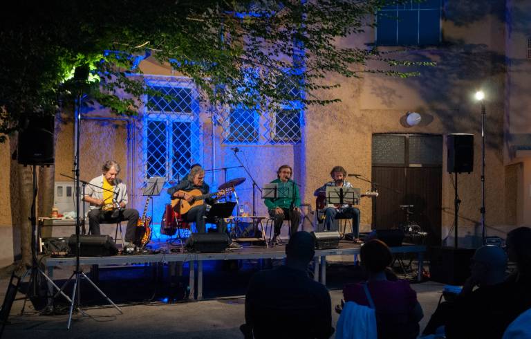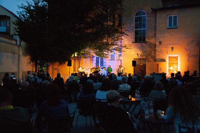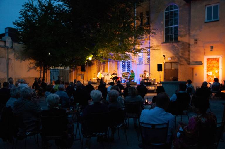 Za Hranilnico prekmurskih dobrot, nekdanjo mestno banko, se nahaja manjše dvorišče, ki ga mimoidoči stežka opazijo. A v poletnih večerih, ko na tem majhnem dvorišču odzvanja glasba, navdihnjena z jazz, blues, funk in ostalimi ritmi, marsikomu zastane korak. Tako je bilo tudi minuli večer.