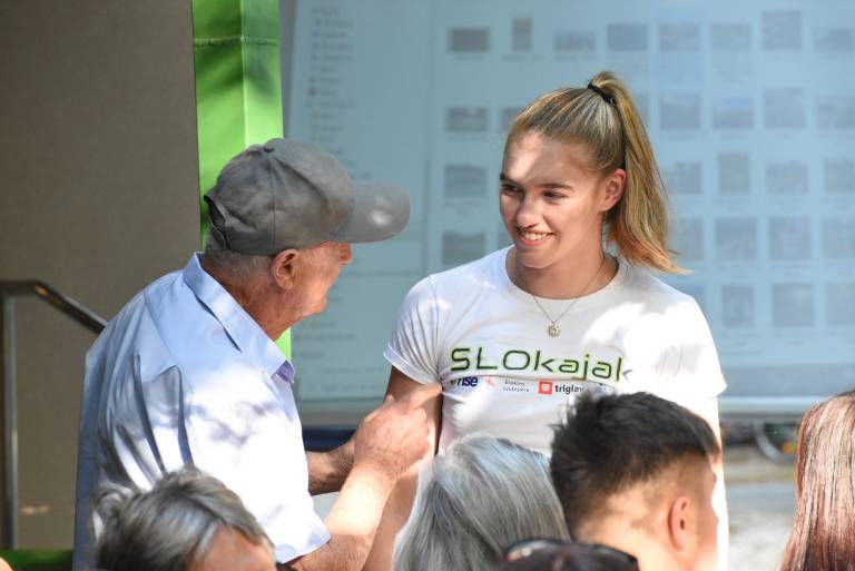 Za mladinsko svetovno prvakinjo so danes, 18. julija, pripravili slavnostni sprejem pri brodu v Krogu.