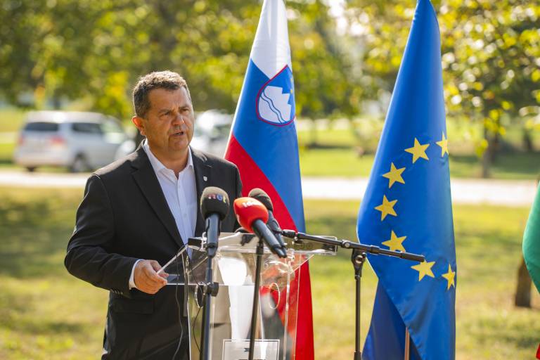 Minister za finance Klemen Boštjančič odkril temeljni kamen za novi prizidek Zdravstvenega doma.