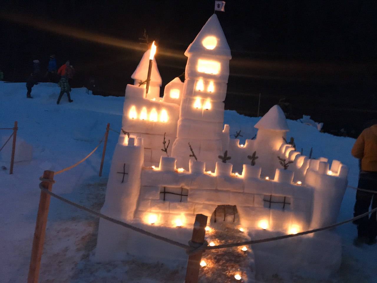 Ko zapade mrak, iz nastalih skulptur zagorijo bakle. Pravljična svetloba poskrbi za pravo januarsko idilo. Tako graditelji kot obiskovalci se sprehodijo skozi rajsko kraljestvo dobrega ogrskega kralja Matije Korvina, ki mu pravimo tudi kralj Matjaž.