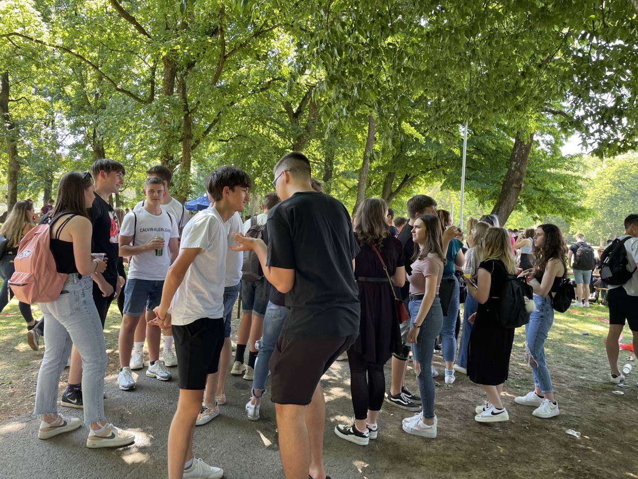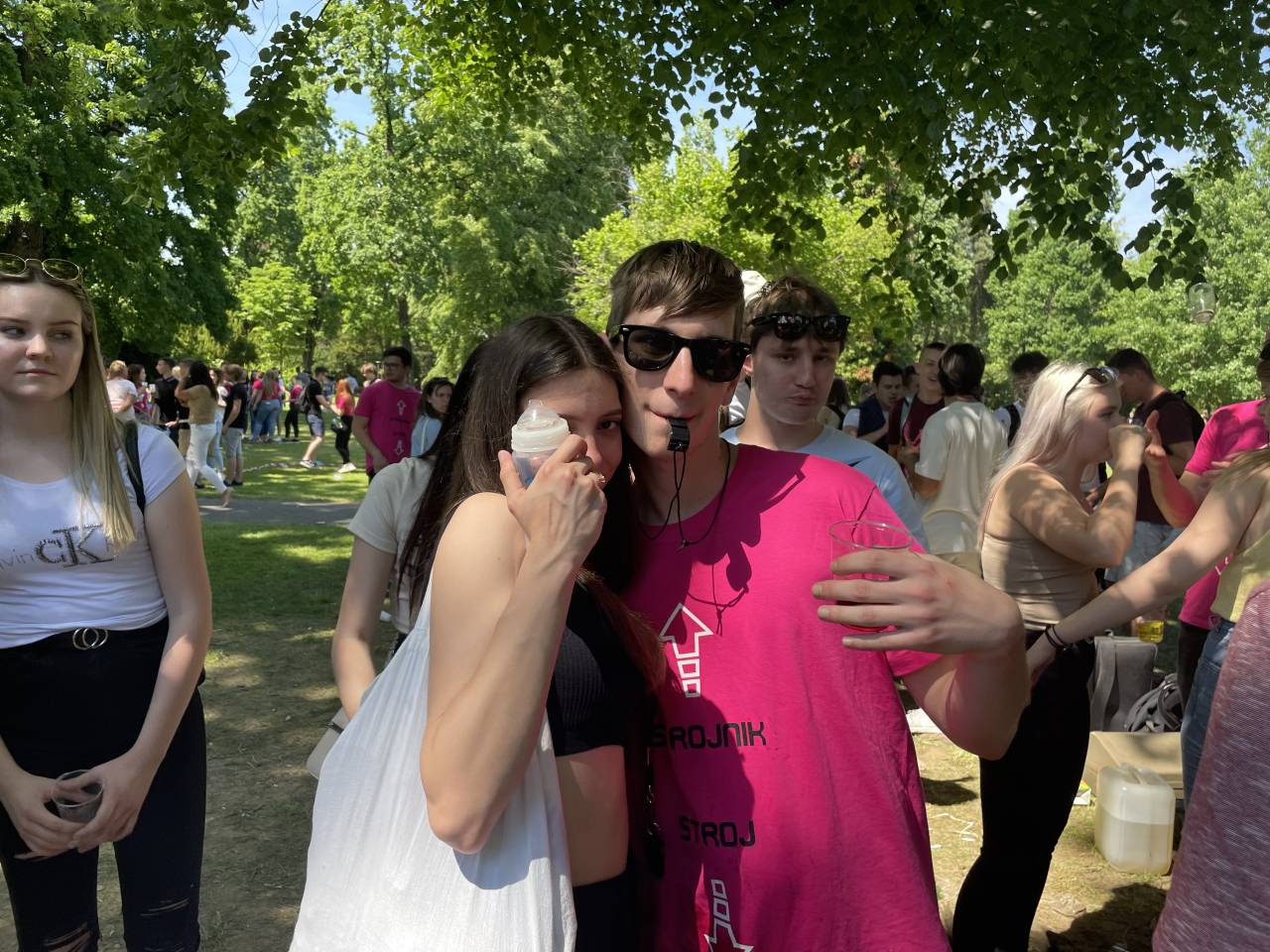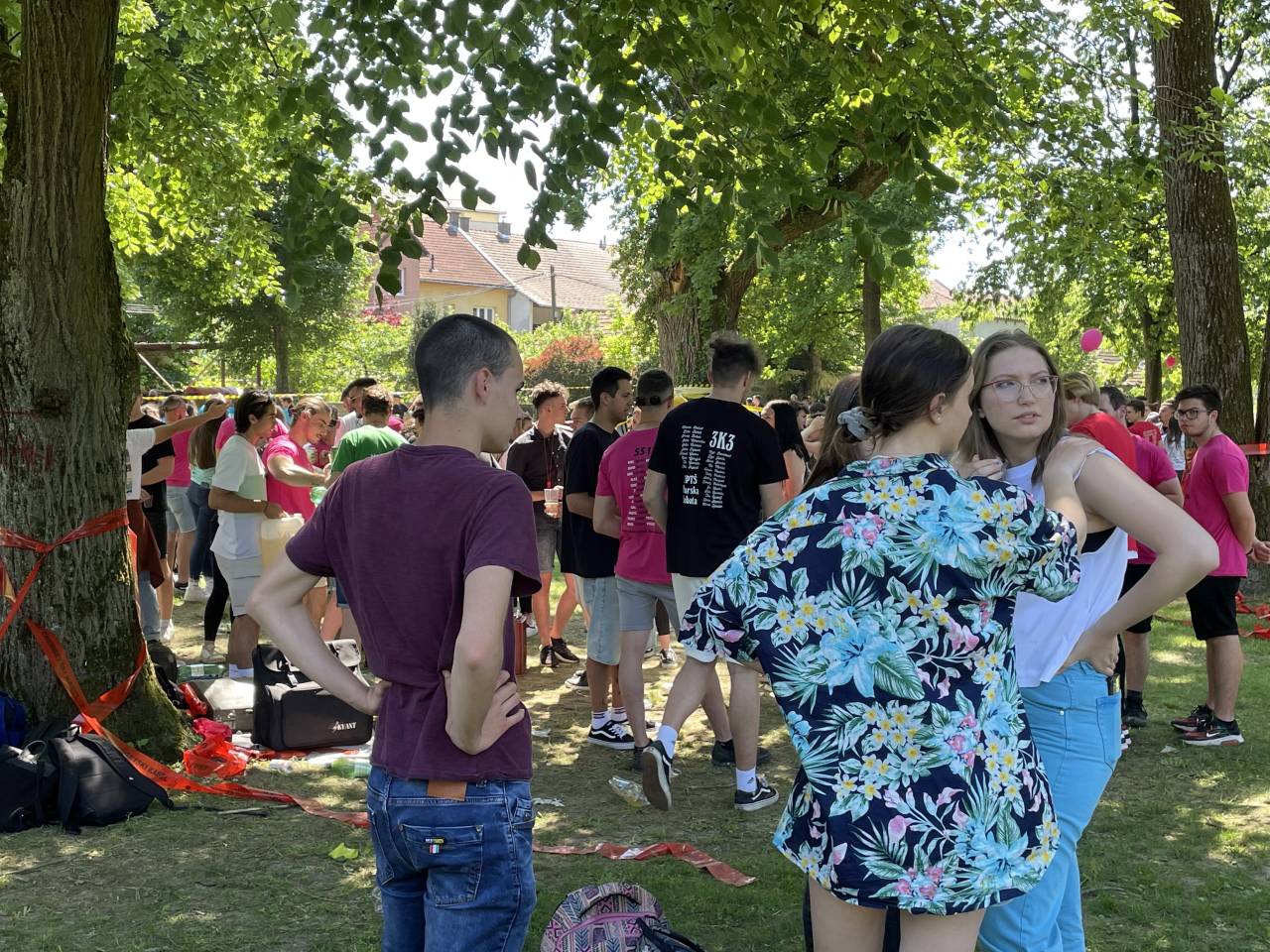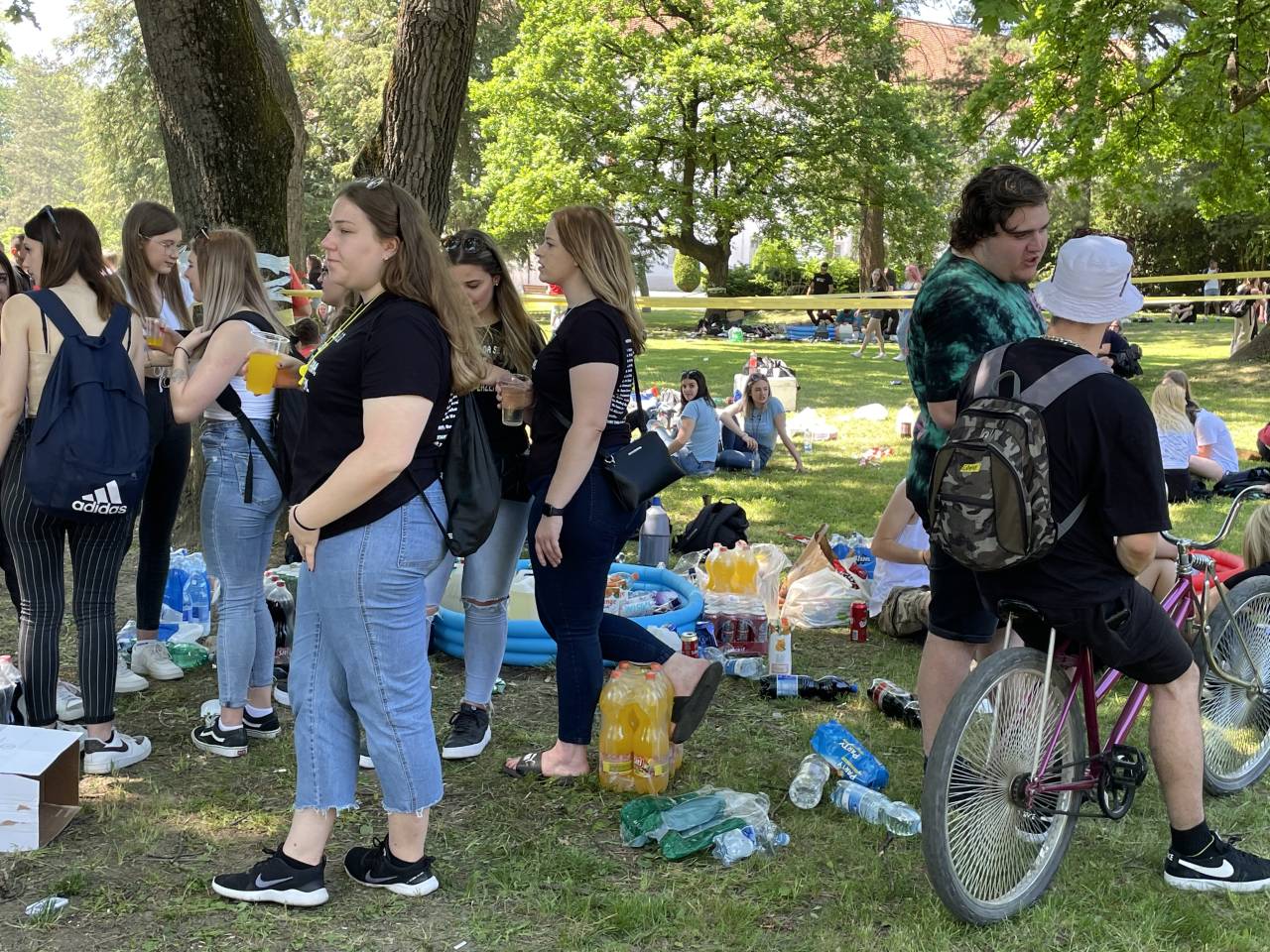 Po ulični četvorki maturanti veselo slavijo konec srednješolskih poti še v soboškem parku.