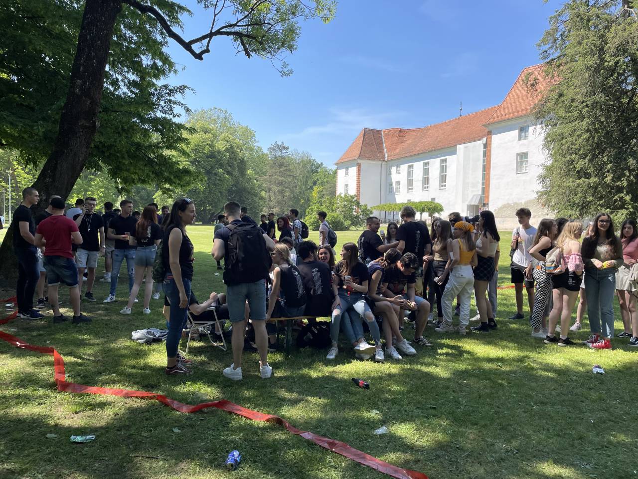 Tam se potem maturanti zberejo po posameznih razredih ter se družijo še v pozno popoldne.