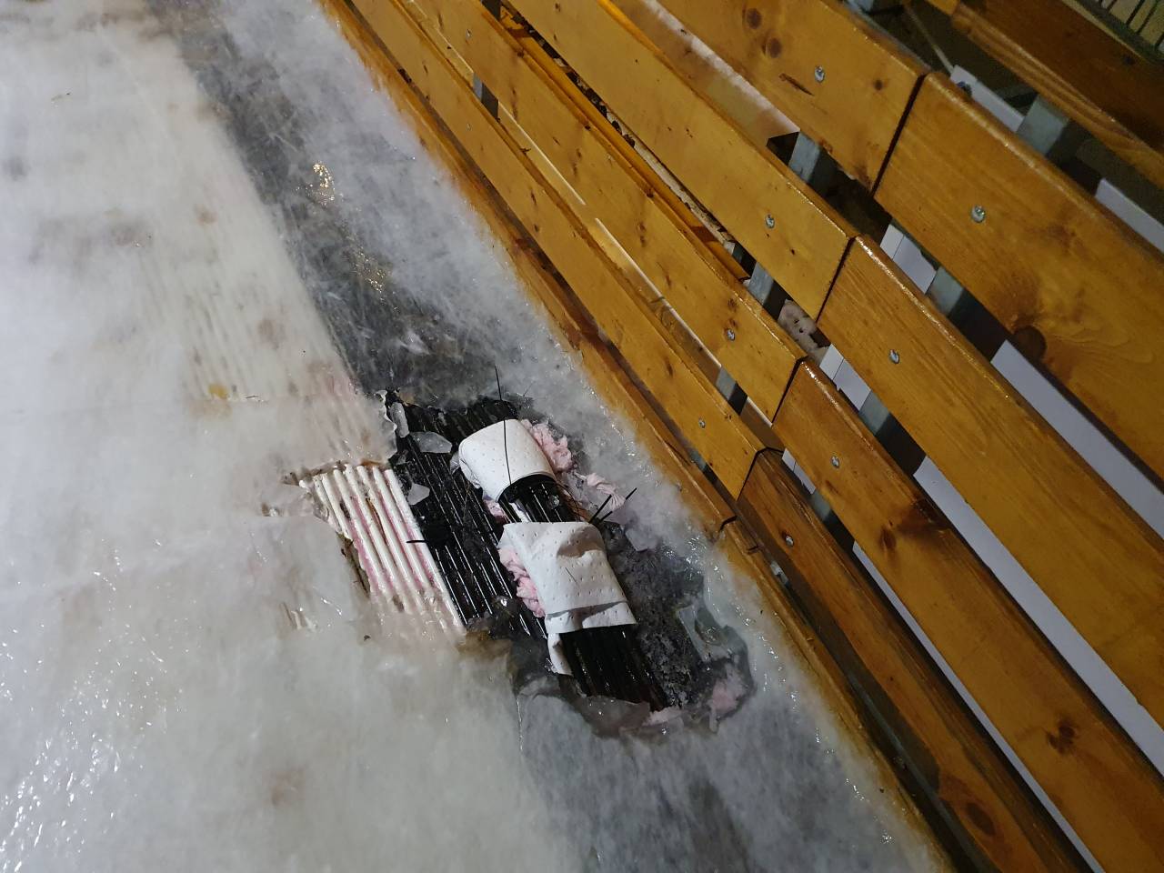 »Zaradi večje luknje v ledu in poškodovane glikolove cevi je agregat za zamrzovanje ledu trenutno izključen.