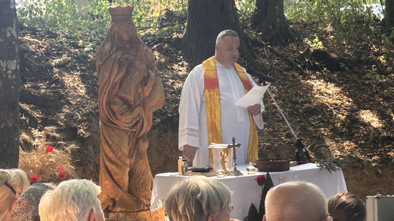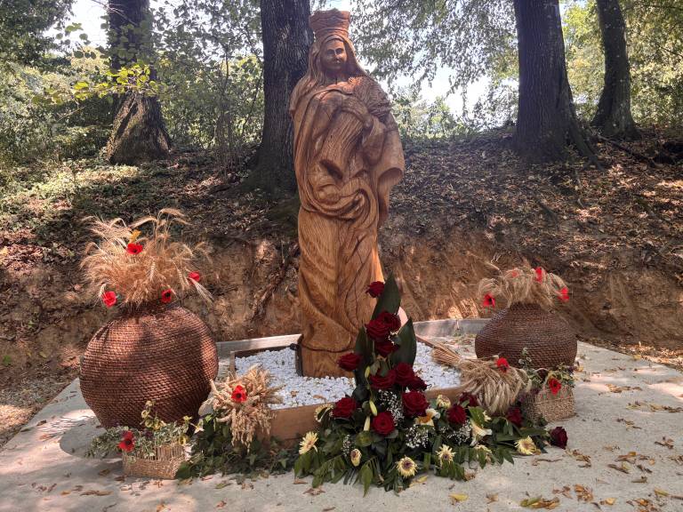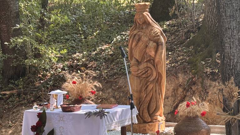 Proščenje Bučo srpne Marije je bilo letos zaznamovano s posebno slovesnostjo – blagoslovom in postavitvijo novega kipa Srpne Marije, zaščitnice žitnih polj.