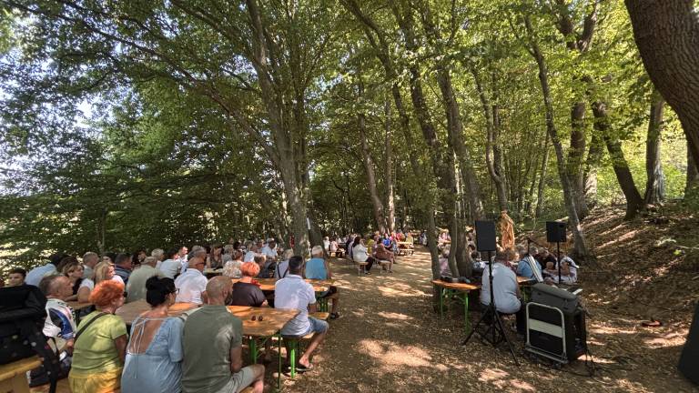 Slovesnost se je pričela ob 10. uri s sveto mašo na prostem v bližnjem gozdu, kjer se je zbralo veliko število vernikov, vaščanov in romarjev iz bližnje in širše okolice.