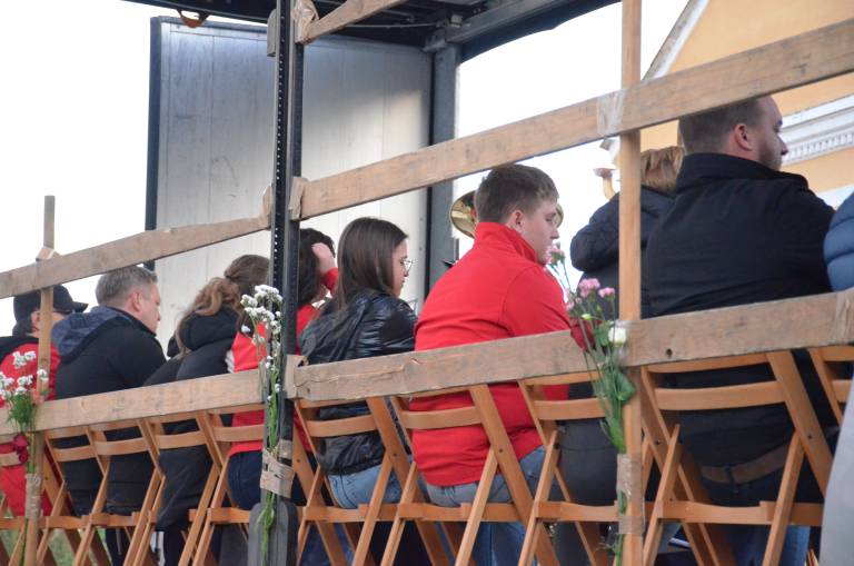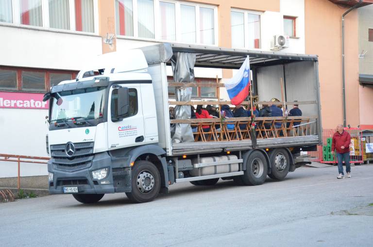 Godbeniki Prekmurske godbe Bakovci, ki že vrsto let ohranjajo to praznično tradicijo, so se s tovornjakom zapeljali po bakovskih ulicah.