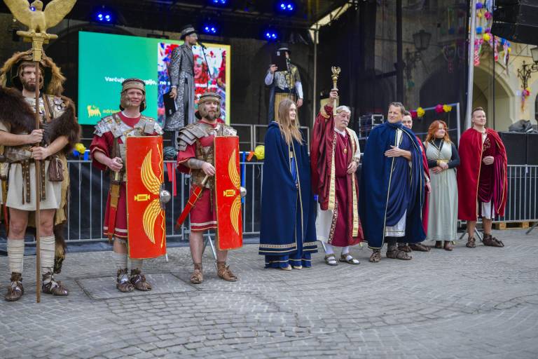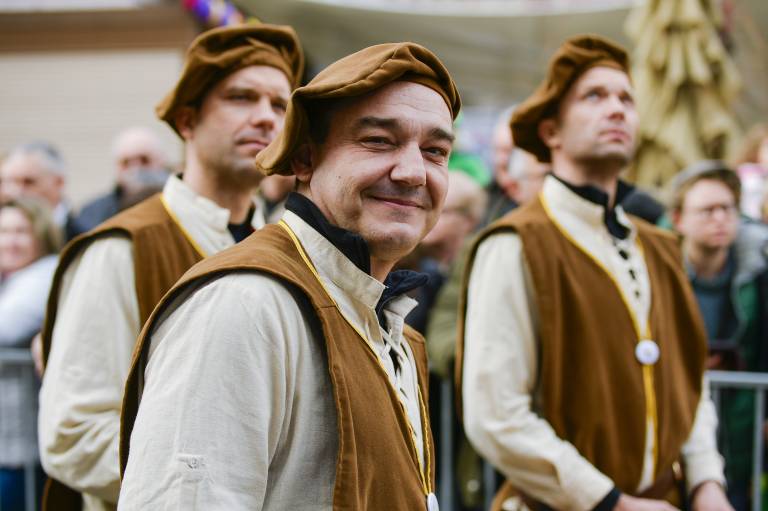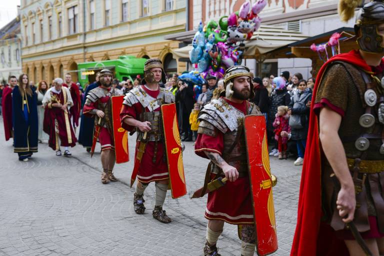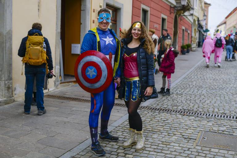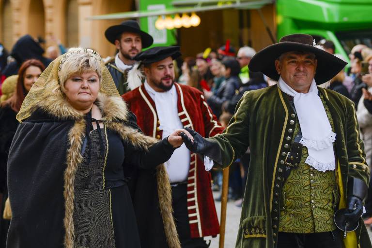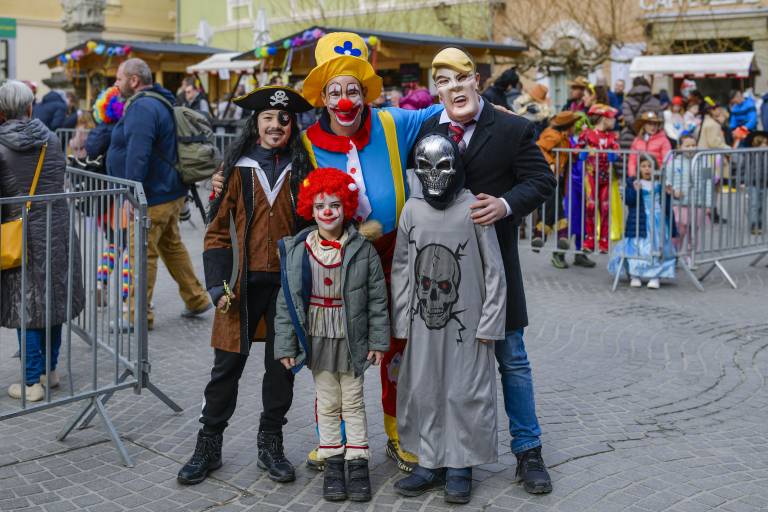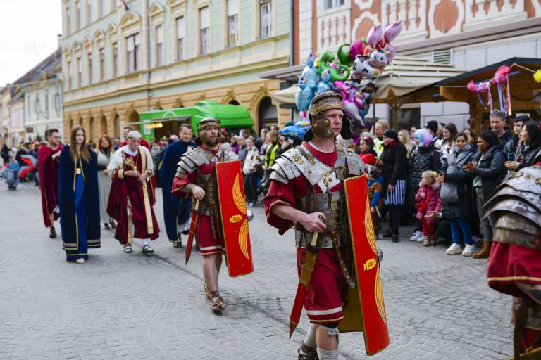 Meščani in obiskovalci so si nadeli pustne oprave in se pridružili sprehodu z Rimljani, srednjeveškimi trgovci, mnogimi drugimi pustnimi liki in seveda kurenti.