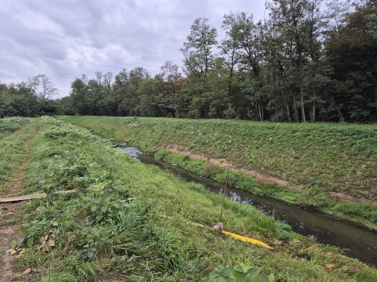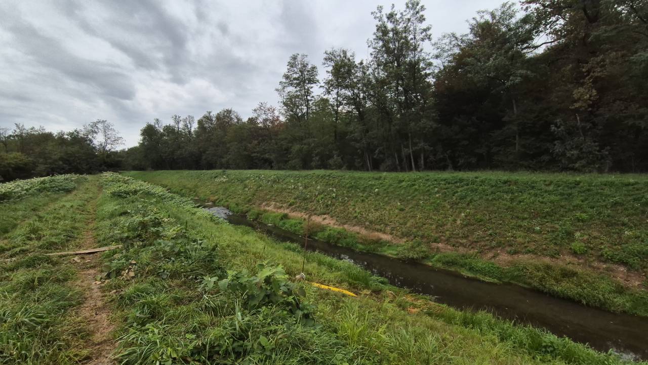 Kot je razvidno s terena, voda trenutno teče po urejenem kanalu.