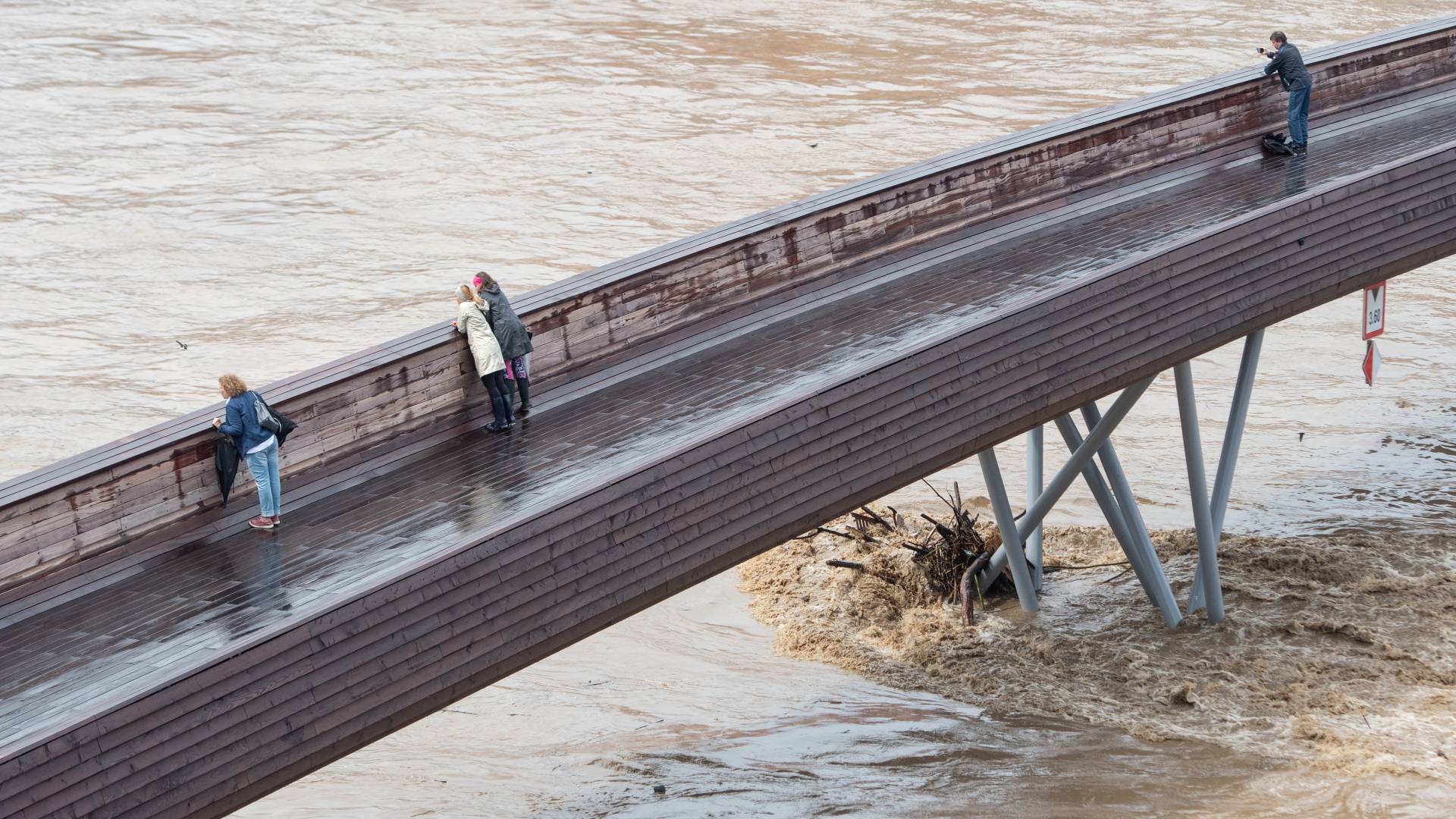 Po napovedih hidroloških modelov bo Mura v Sloveniji dosegla konico pretoka okoli 1300 do 1350 kubičnih metrov na sekundo v soboto zjutraj.