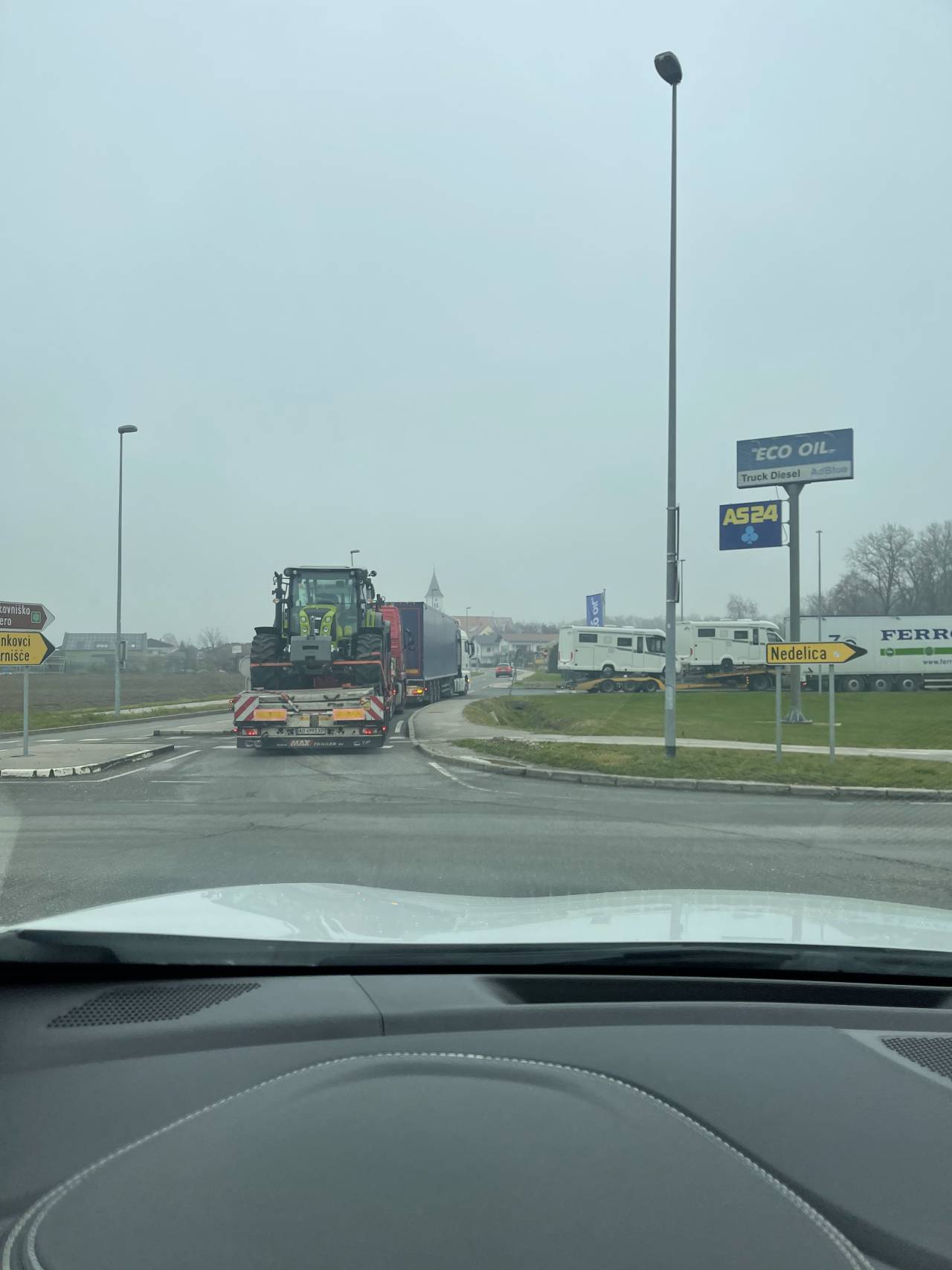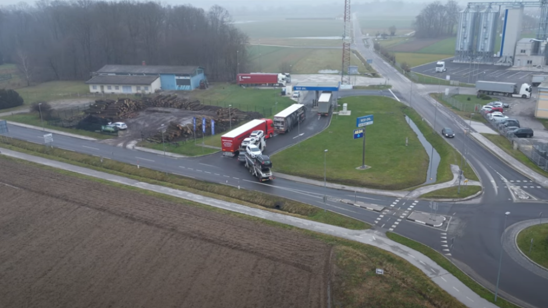 Kot je razvidno s fotografij, vozniki tovornjakov z nepremišljenim početjem povzročajo zastoje in zapirajo krožišče.