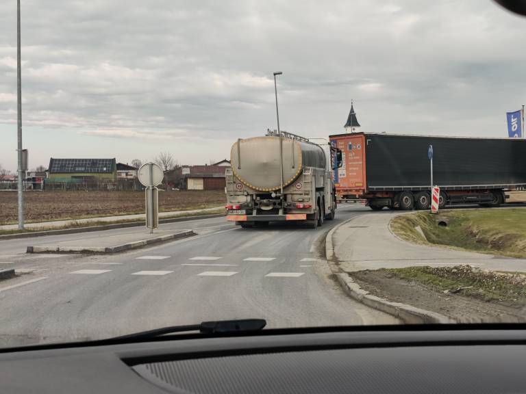 Nedavno je eden od voznikov kamiona podrl prometni znak, saj se po besedah Horvata več kot en tovornjak tam ne more obrniti, ko pa stojita dva, pa nastane problem: »Tudi policija je povedala, da je nevarnost naleta, ker komplet zaprejo krožno križišče.«