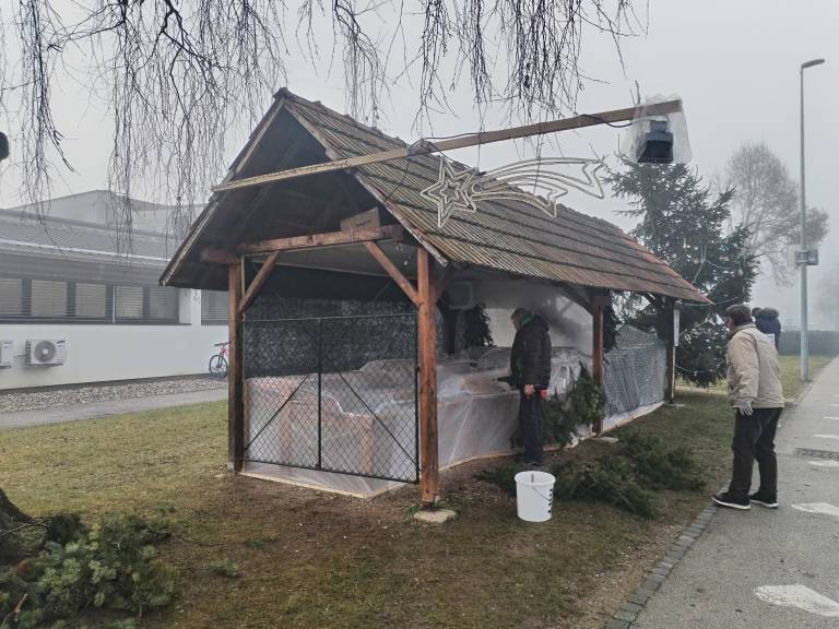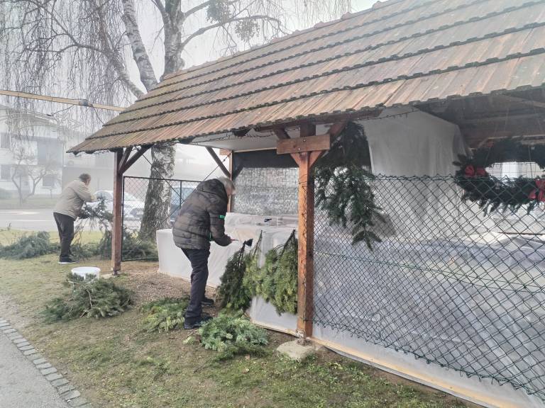 Pri pripravi sodeluje več kot deset ljudi. Ob nadstrešku, pod katerim so vsako leto postavljene jaslice, bodo postavili tudi dve stojnici.